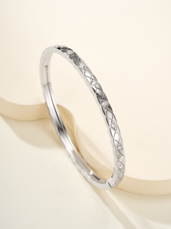 세련된 퀼팅 큐빅 팔찌 17cm