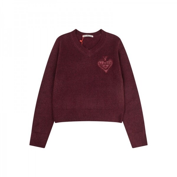 하트 로고 브이넥 패션 여성 니트