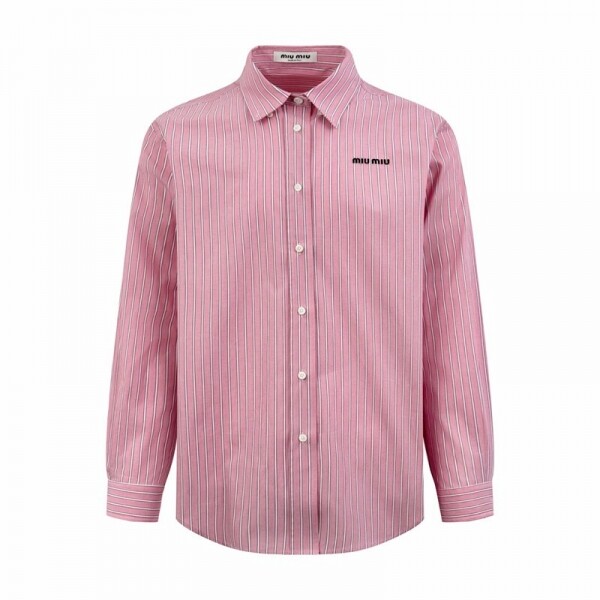 자수 핑크 스트라이프 긴팔 셔츠