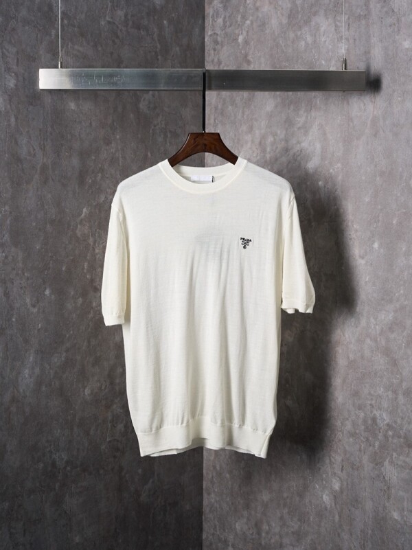 클래식 캐주얼 라운드 니트 반팔