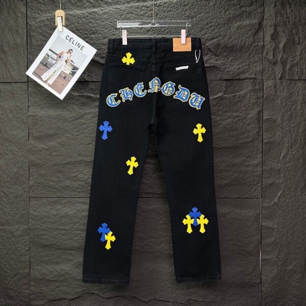 와펜 커플 워싱 데님 팬츠