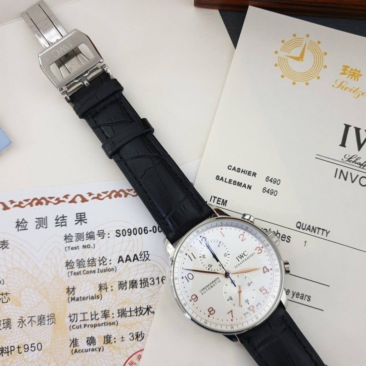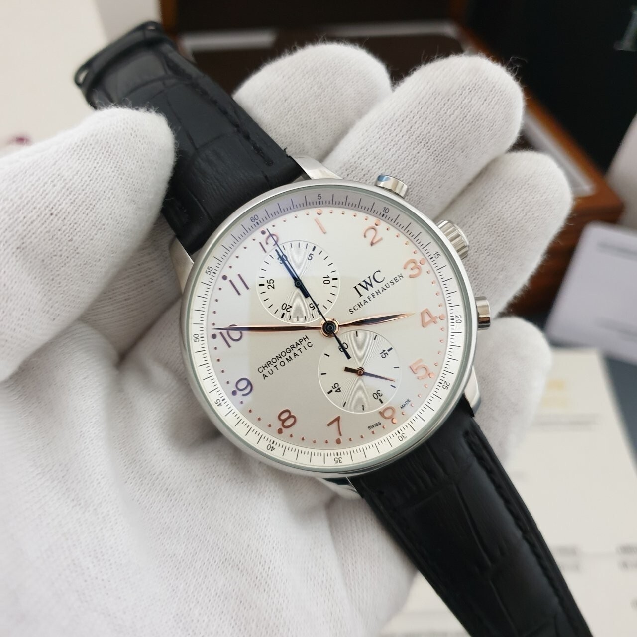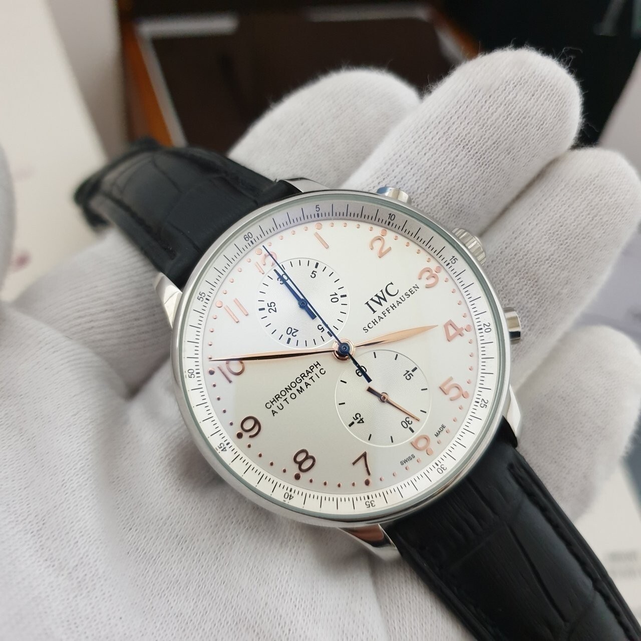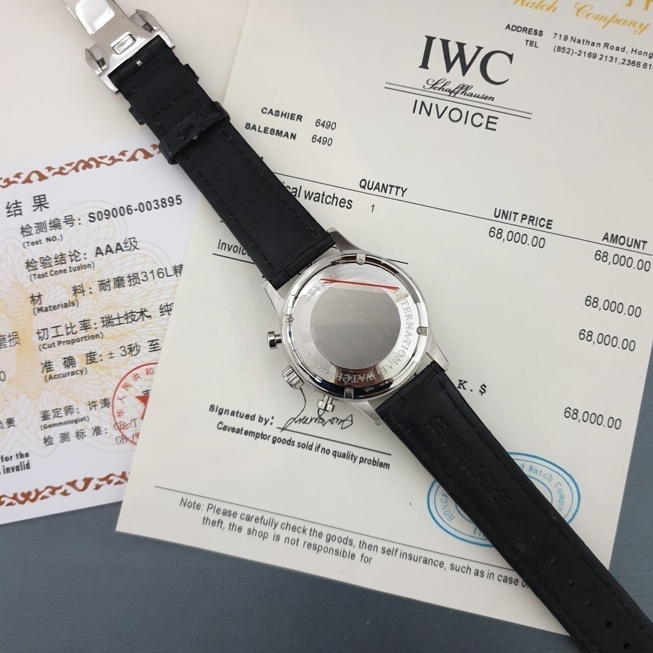 IW. 포르투기스 흰판 골드핸즈 은장 가죽밴드 시계