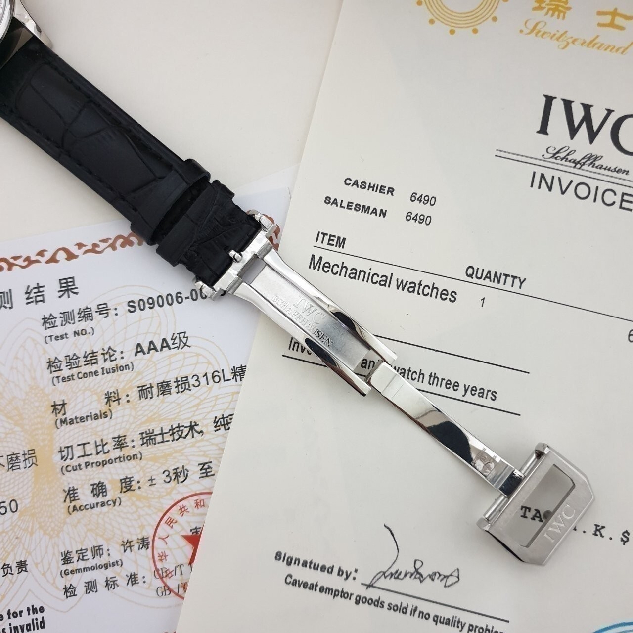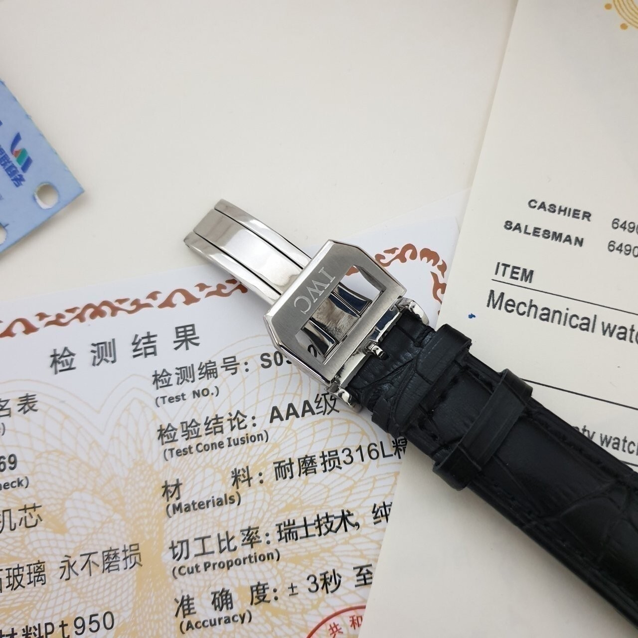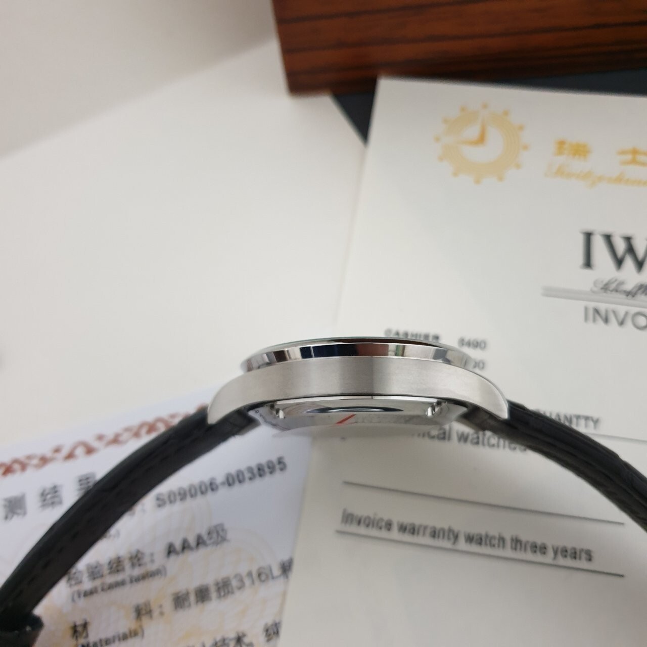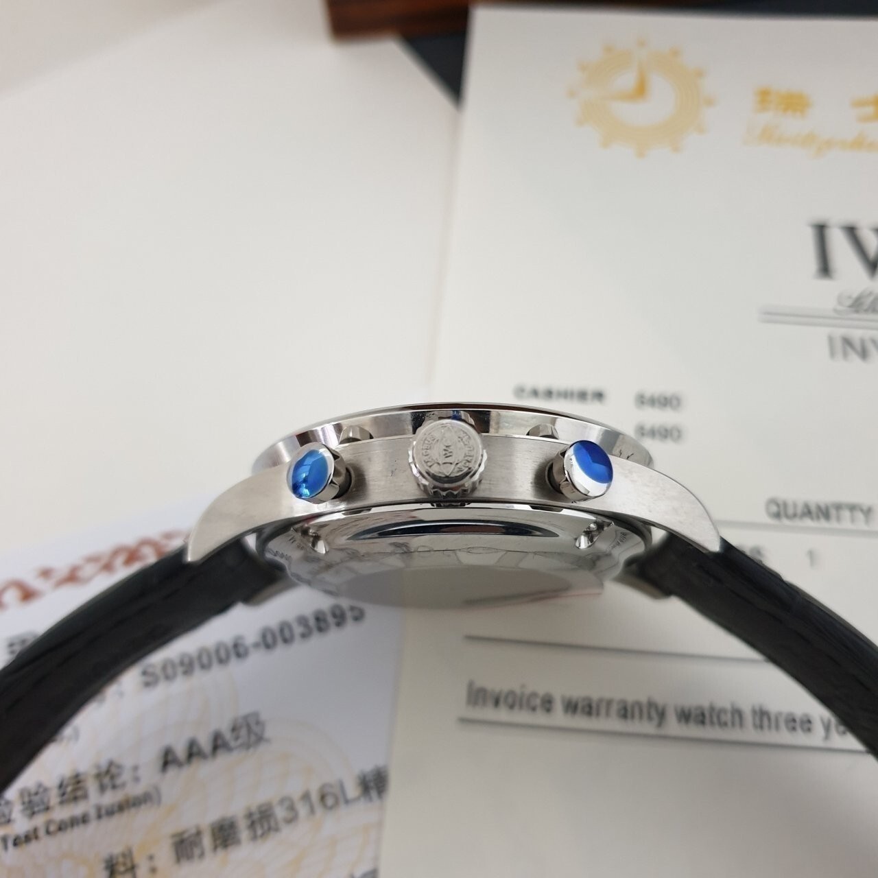 IW. 포르투기스 흰판 골드핸즈 은장 가죽밴드 시계