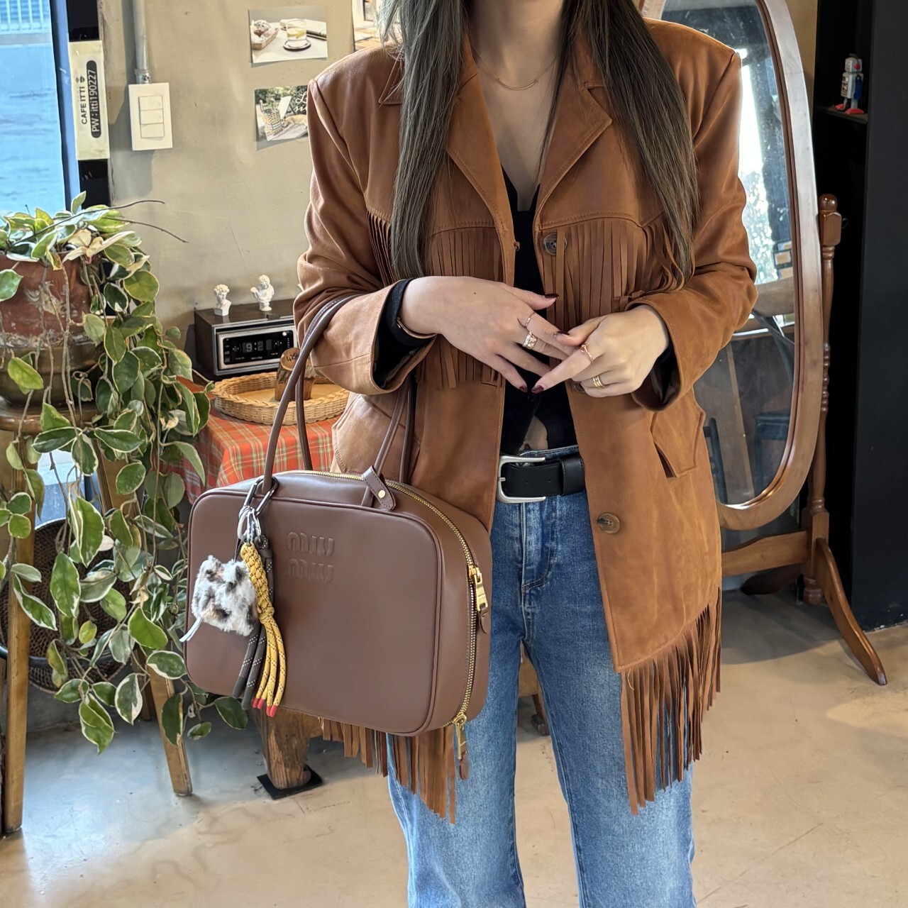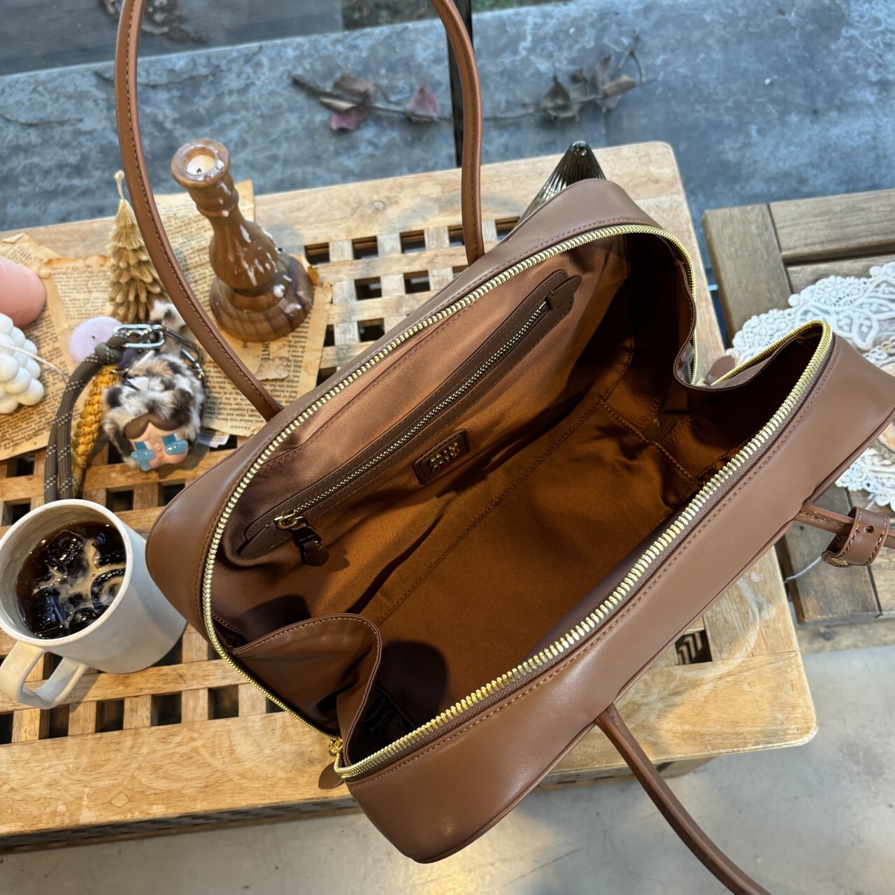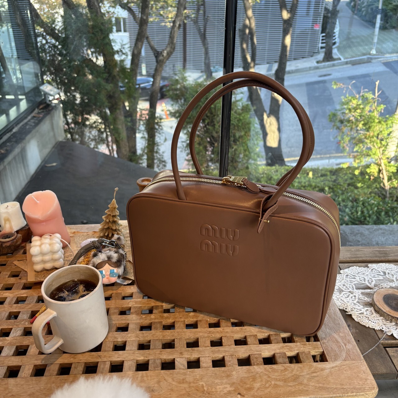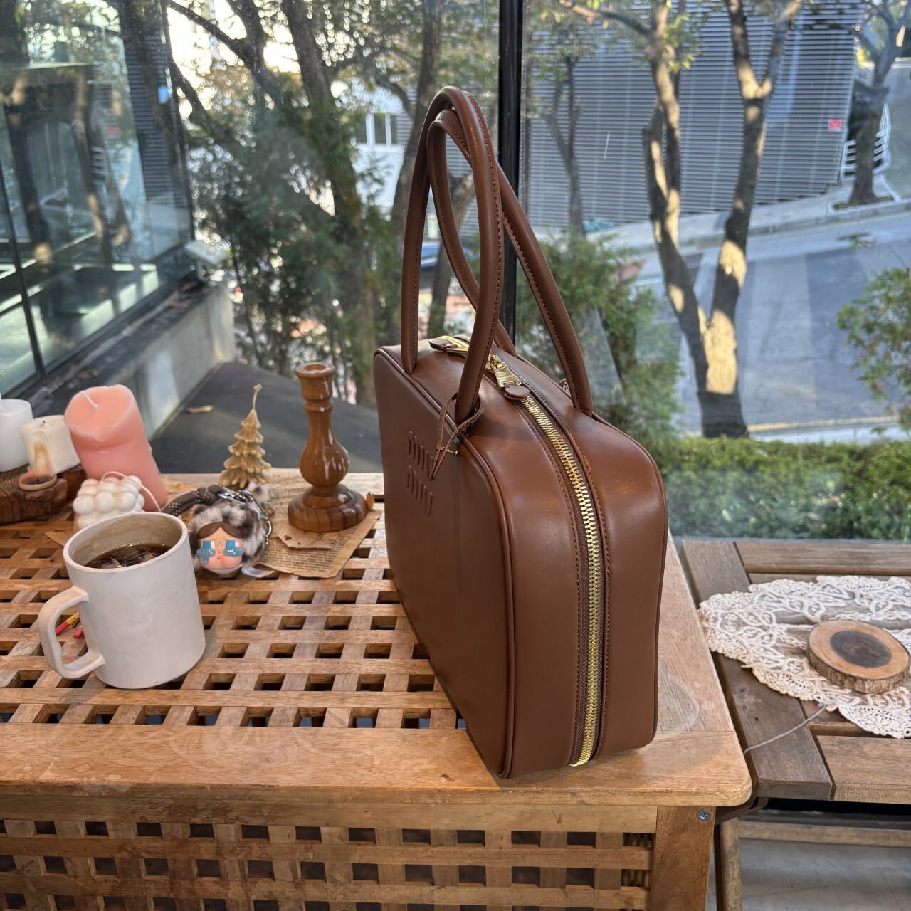 미우미우 가죽 보 백 브라운최상급 가죽구성품: 더스트구성사이즈 : 높이 23cm폭 34cm 길이 10cm색상 : 브라운핸드백 또는 숄더백으로 사용 가능한 가죽 핸들골드톤 하드웨어전면 엠보싱 레터링 로고지퍼 클로저더블 지퍼 포켓이 달린 코튼 새틴 라이닝
