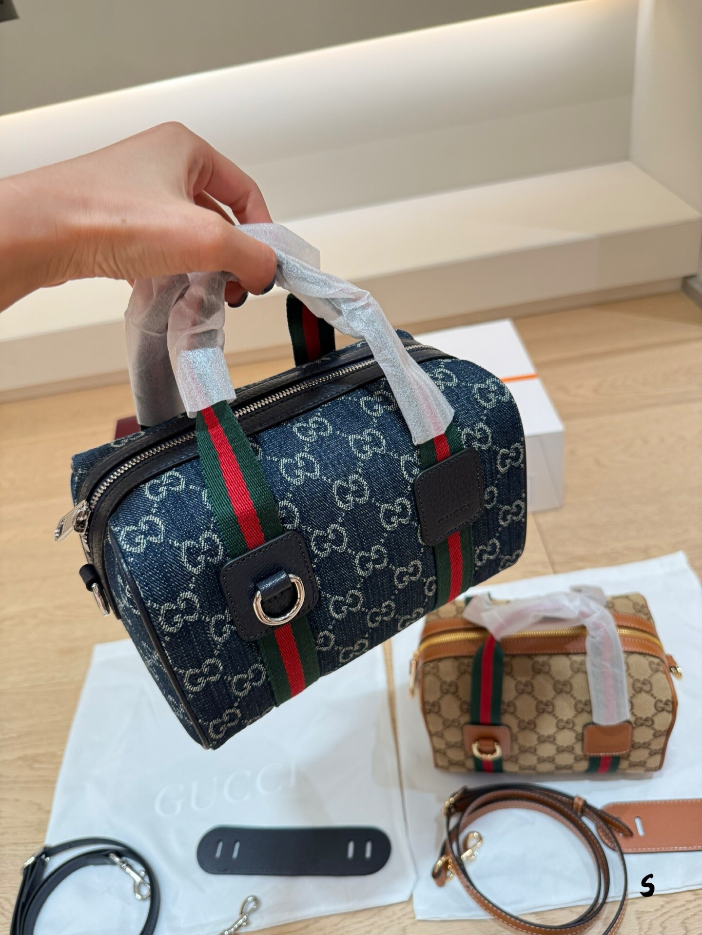 구찌 보스톤 뉴패키지 대용량 캔버스백으로 릴랙스함과 실용성의 완벽한 조화 #20cm 더블케이스