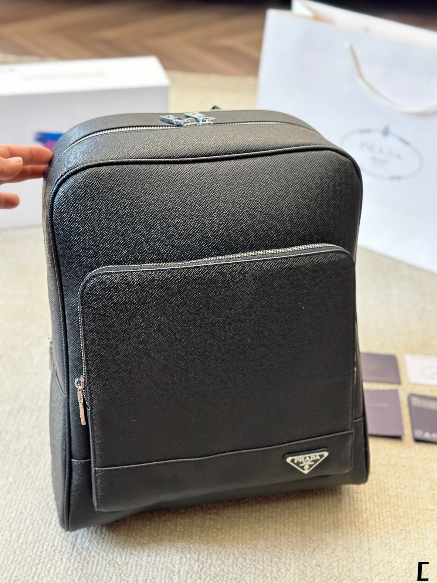 프라다의 시크한 아이템인 백팩 이 라인은 프라다의 다음 시즌 주력 모델이 될 것입니다. 프라다 클러치 라인의 디자인이 돋보이며, 클러치백으로 우아하고 스타일리쉬하게 연출하실 수 있습니다! 사이즈 29 * 38 cm