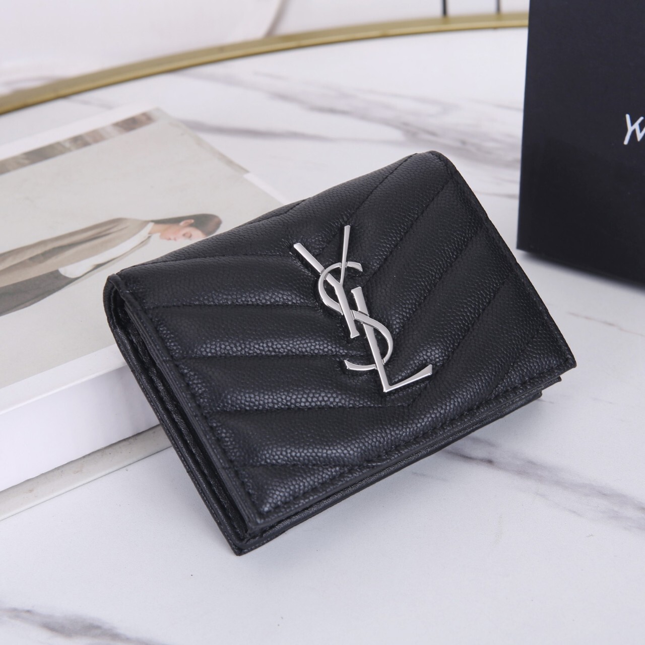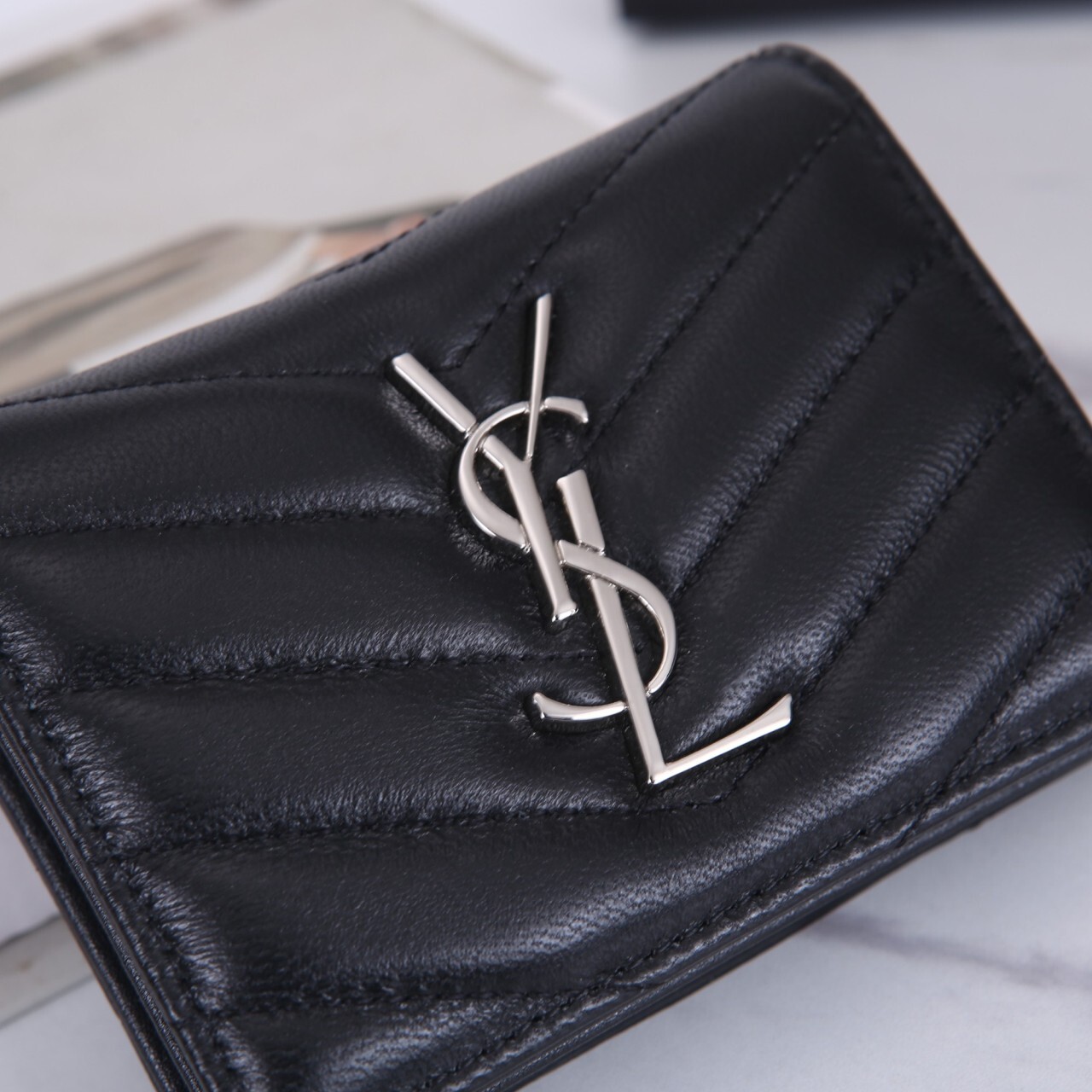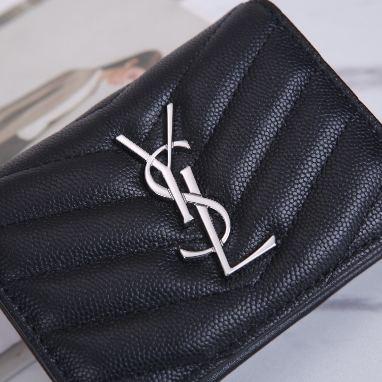 생로랑 모노그램 캥거루 미니 반지갑