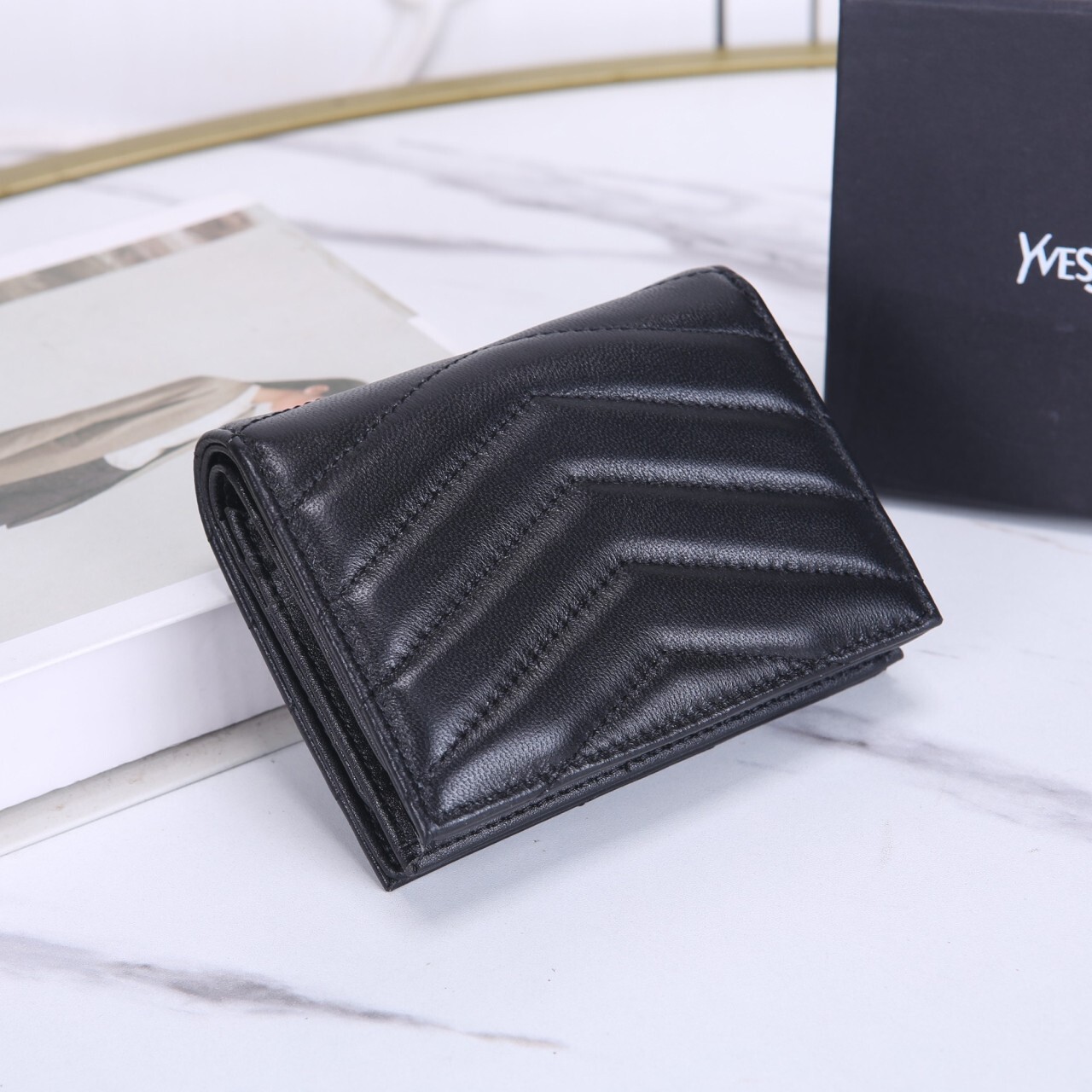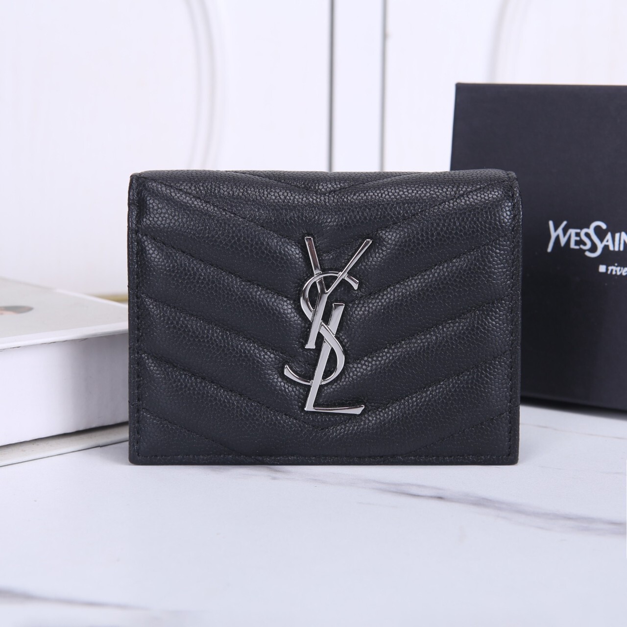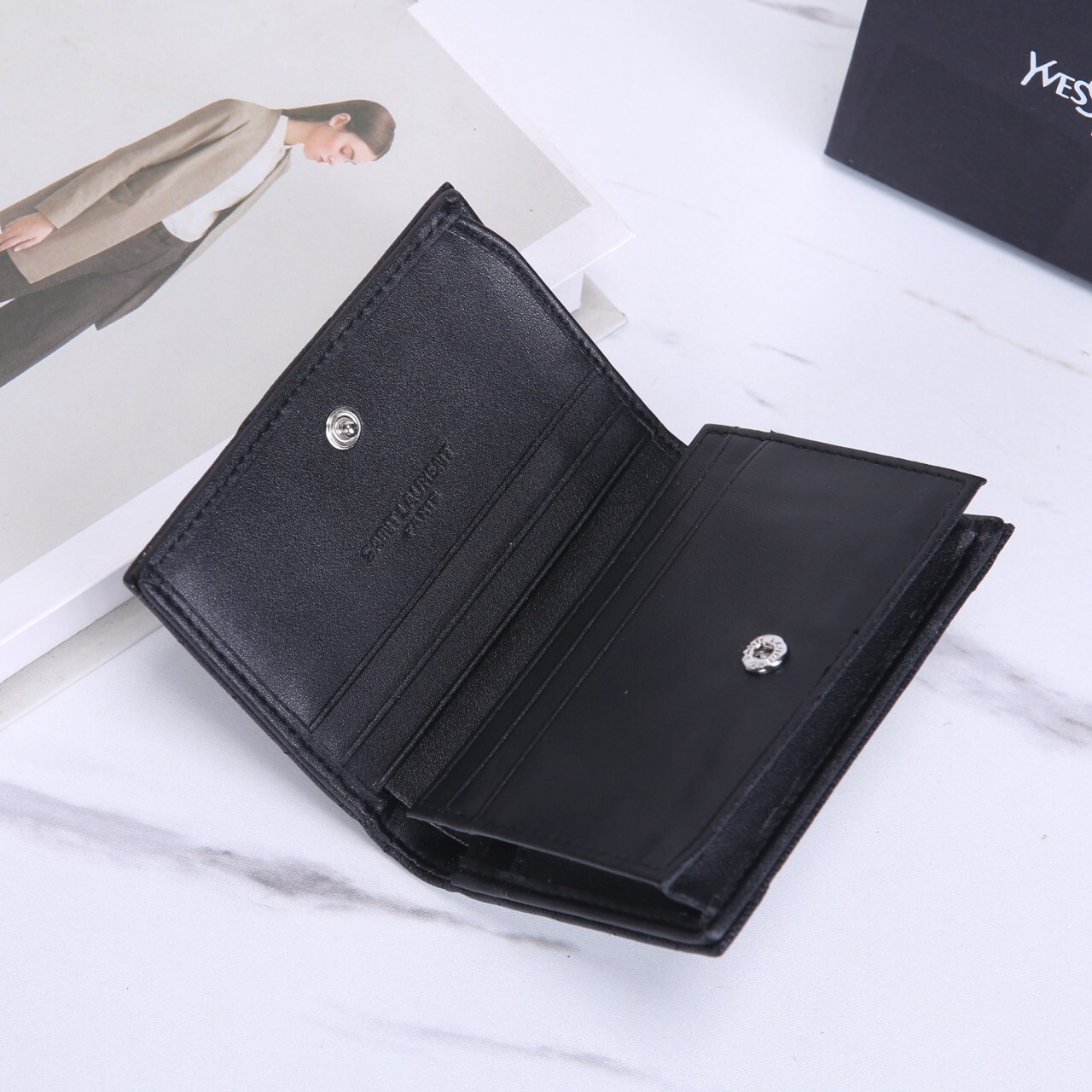 생로랑 모노그램 캥거루 미니 반지갑