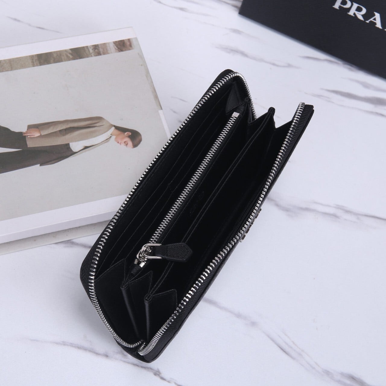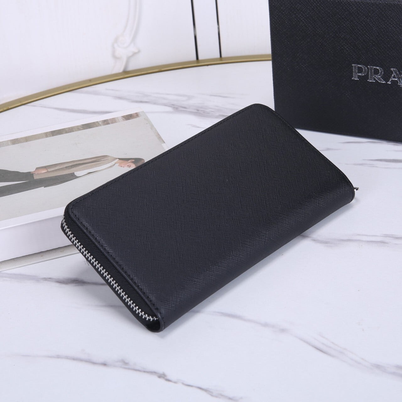 프라다 Saffiano (사피아노) 지퍼 장지갑 (메탈 로고)