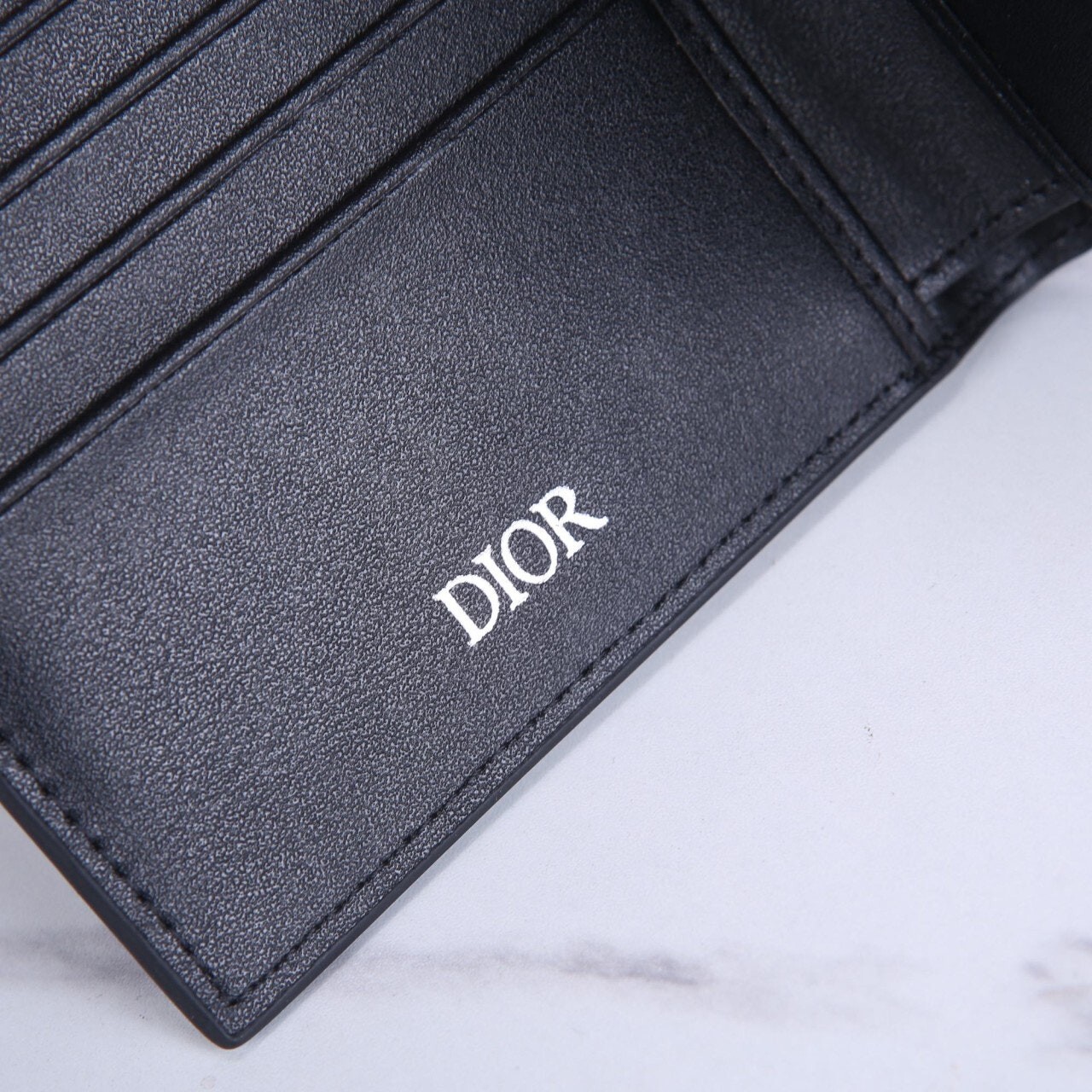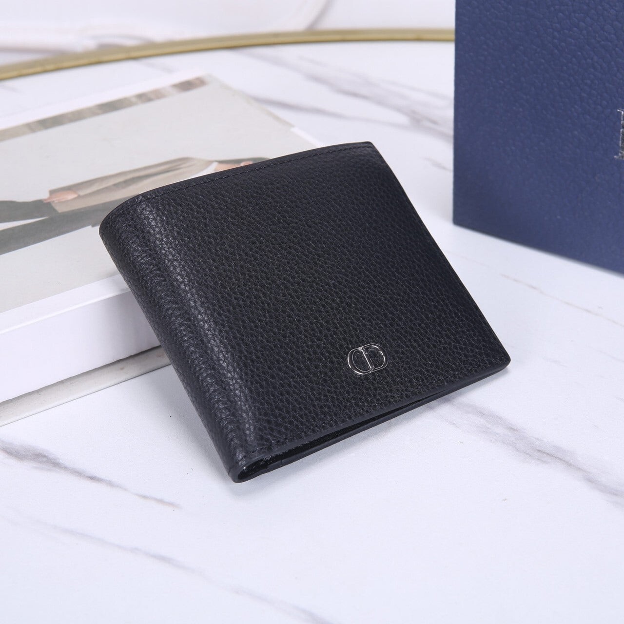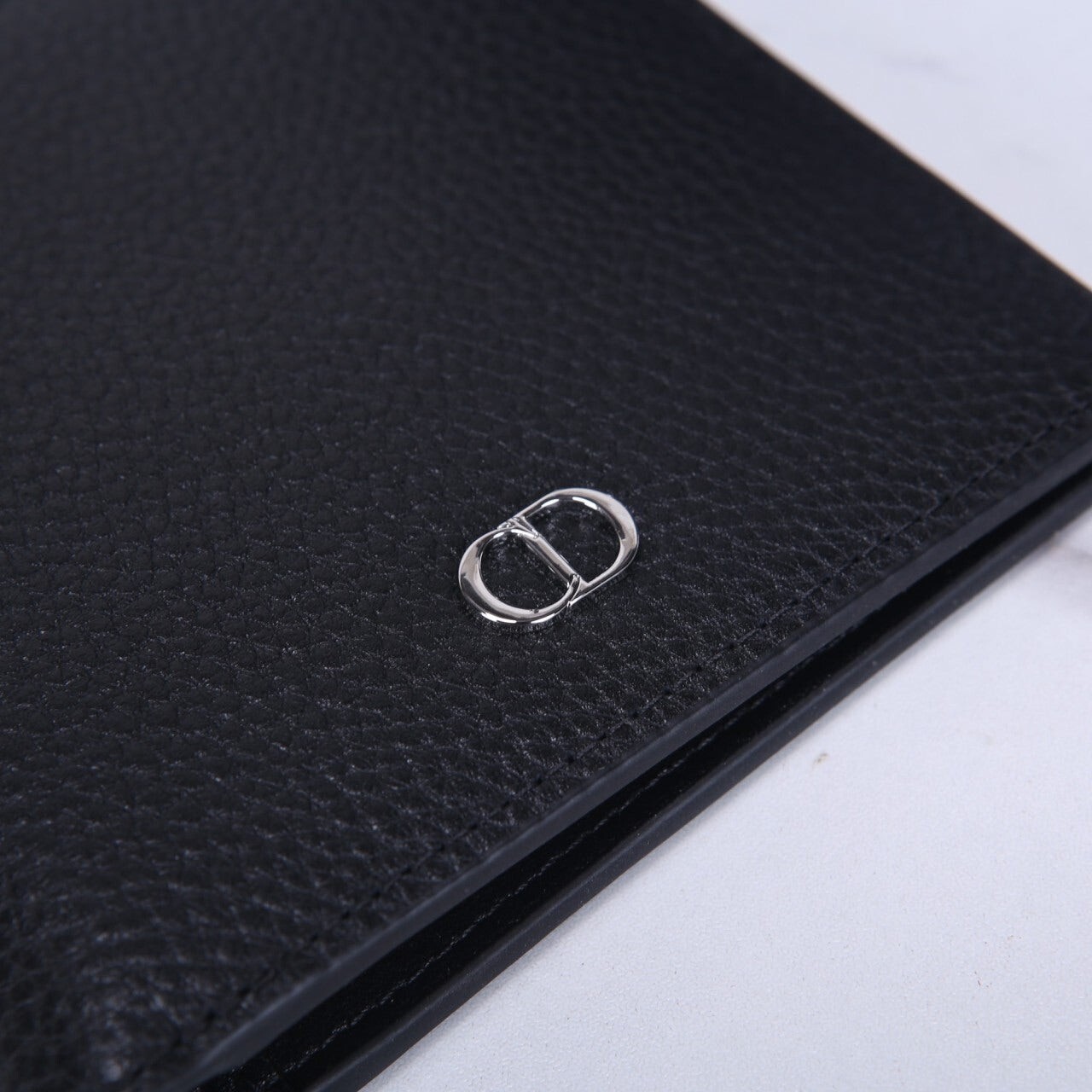 디올 CD Icon 반지갑 (블랙 그레인 송아지 가죽)