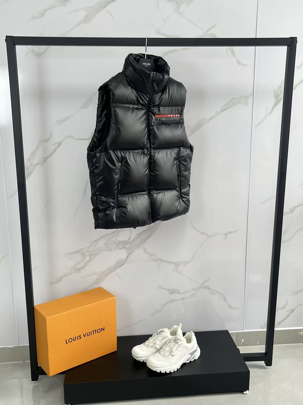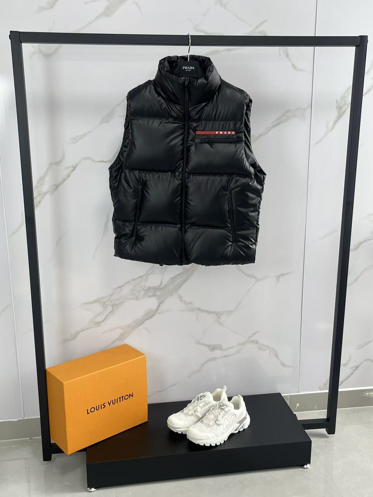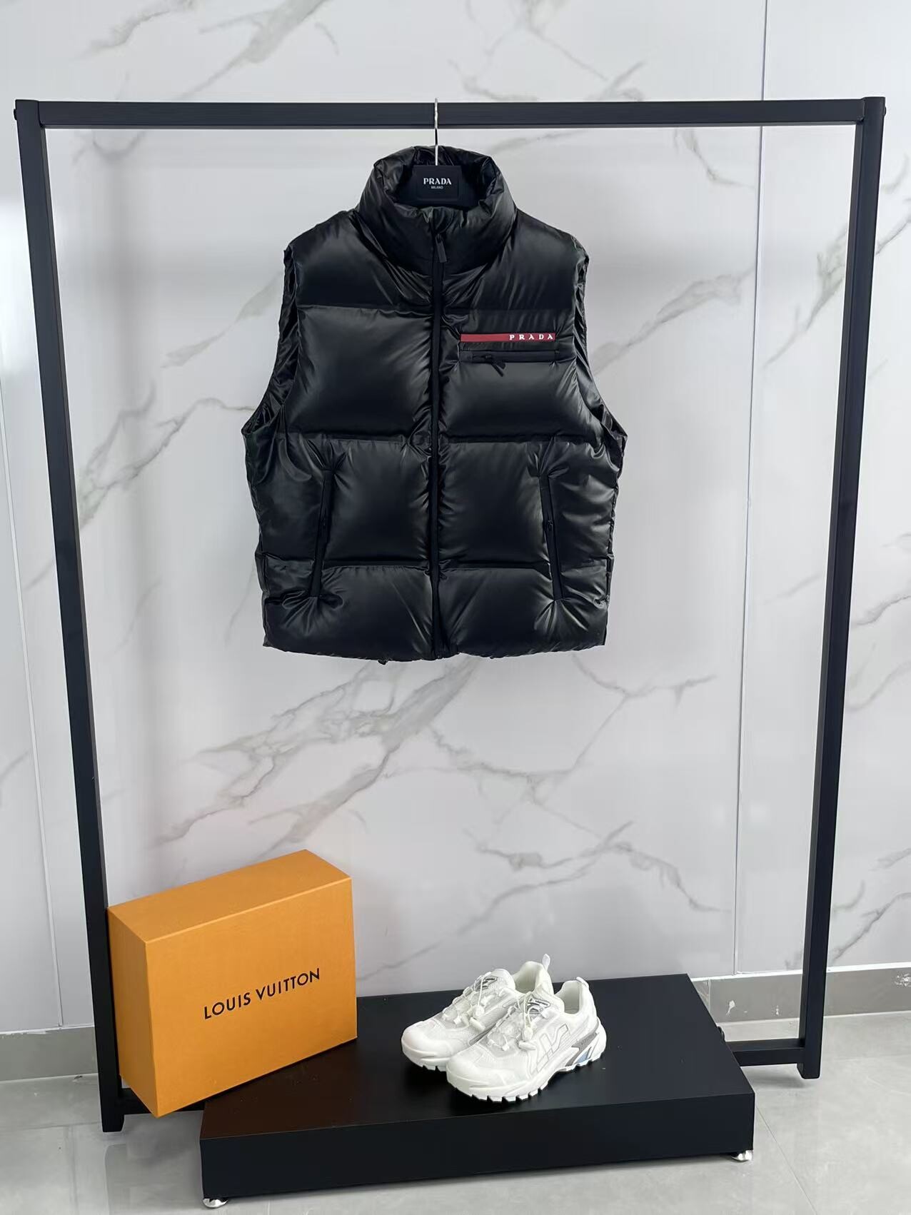 프라다 로고 구스 다운 베스트 패딩 조끼