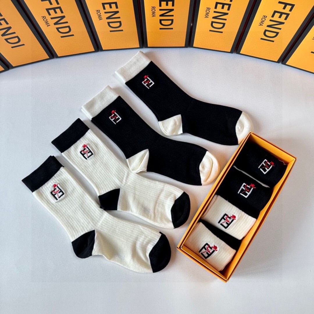 Fendi新款中长款刺绣假人袜!每盒四种颜色。