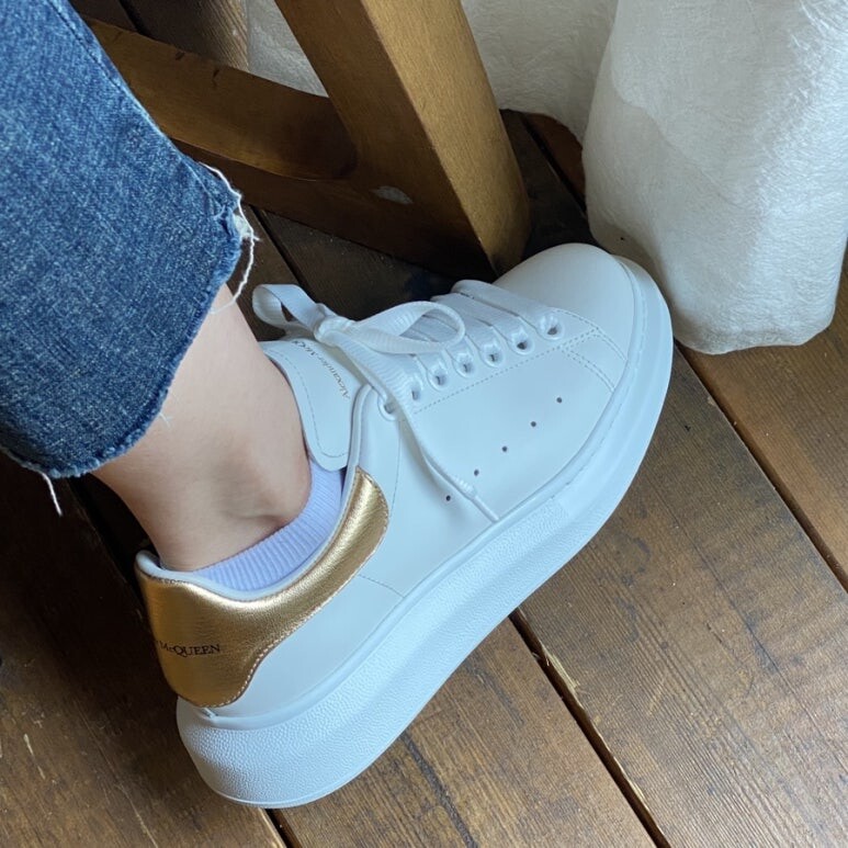 LEX02알렉산더 맥퀸 오버사이즈도 스니커즈 화이트 골드가죽 소재를 조합해 새롭게 선보이는 상징적인 트레이너 슈즈색상풀박스 쇼핑백옆면의 비통 시그니처사이즈36 23037 23538 24039 24540 250 ~255
