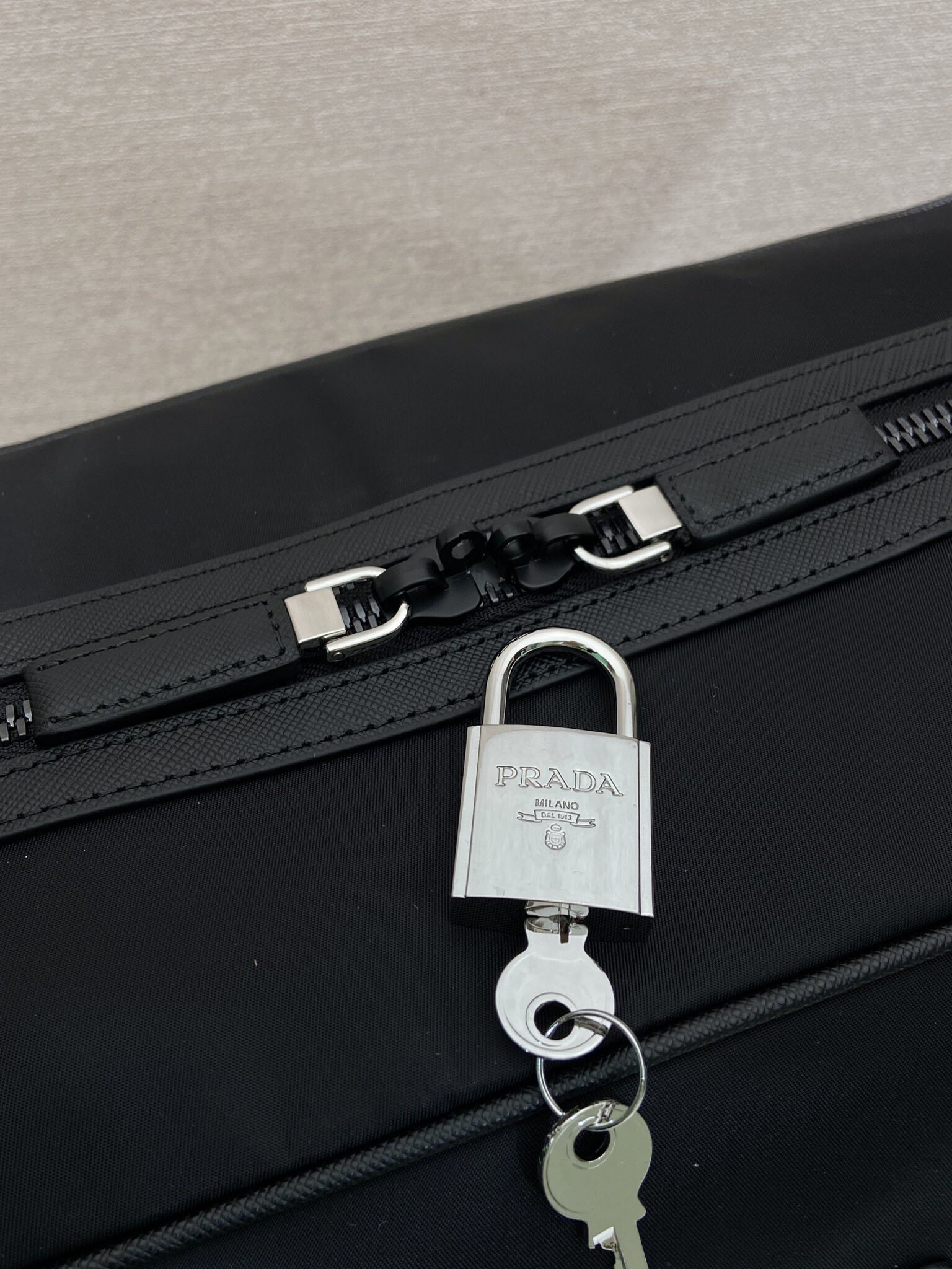 프라다 리나일론 레더 더플백