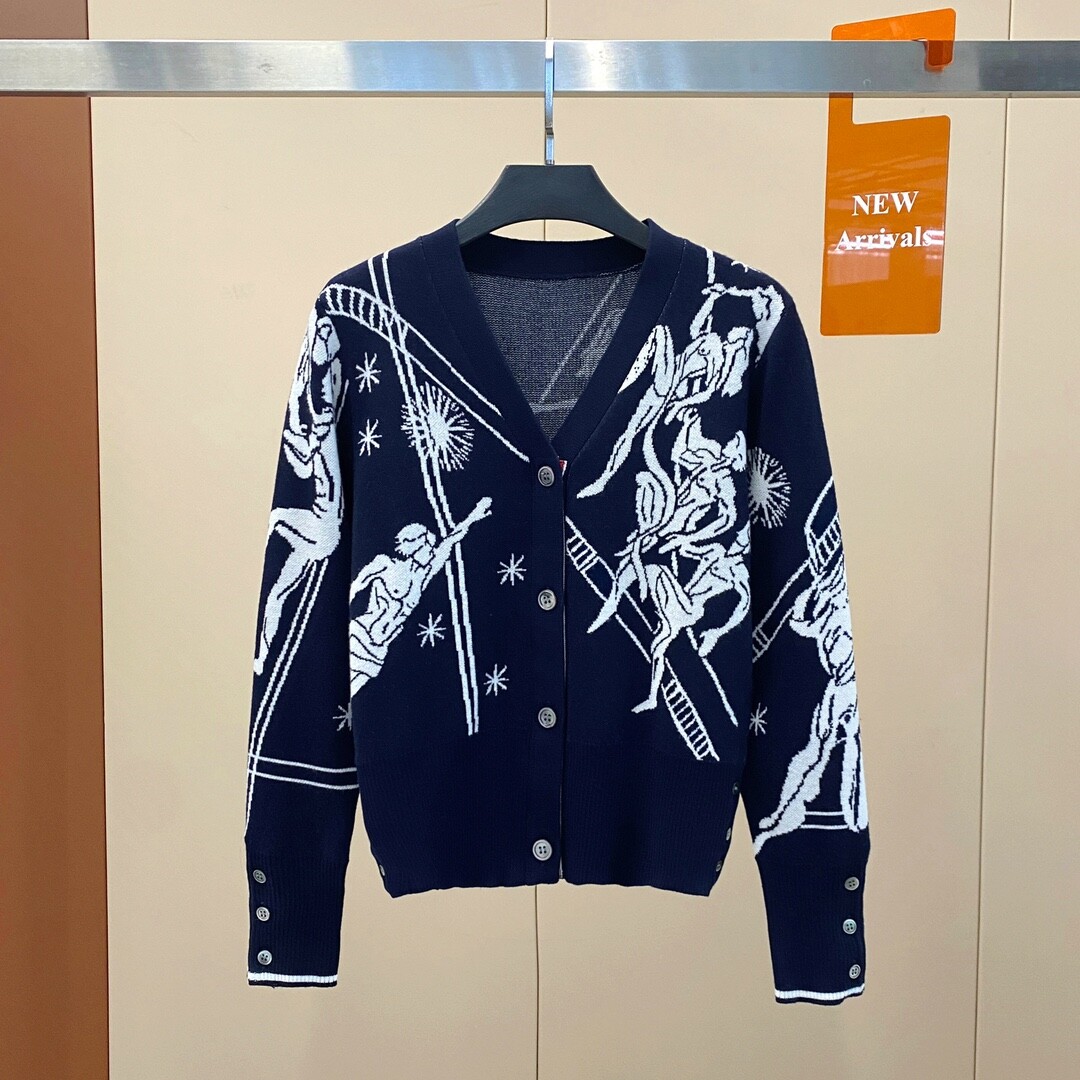 톰브라운 자가드 니트 가디건