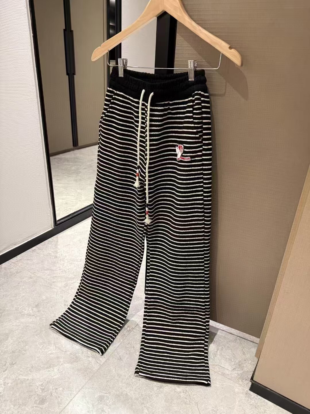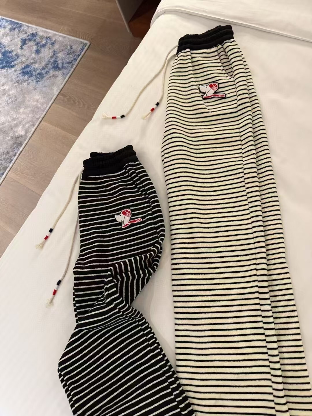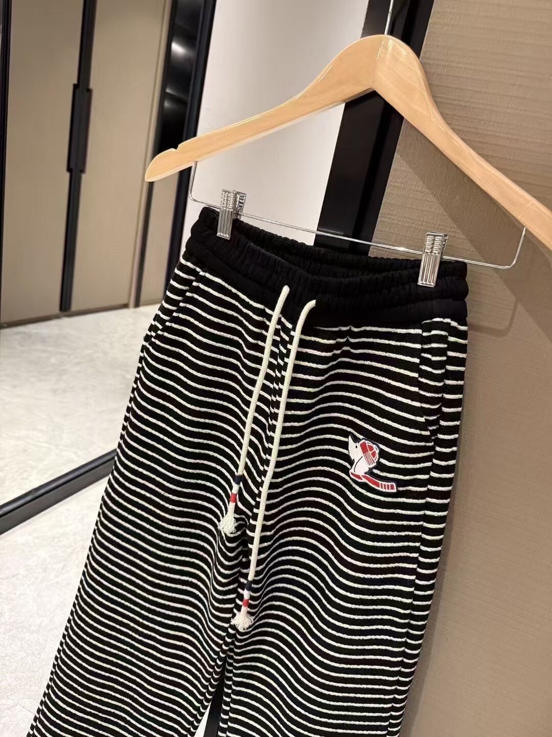 톰브라운 밴딩 와이드 기모 팬츠
