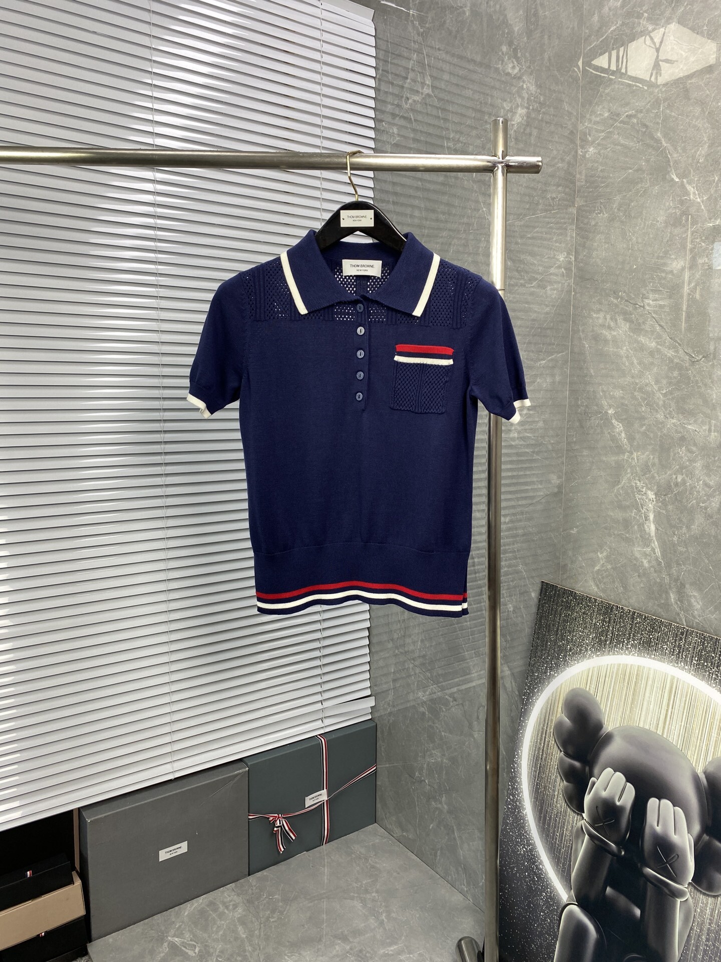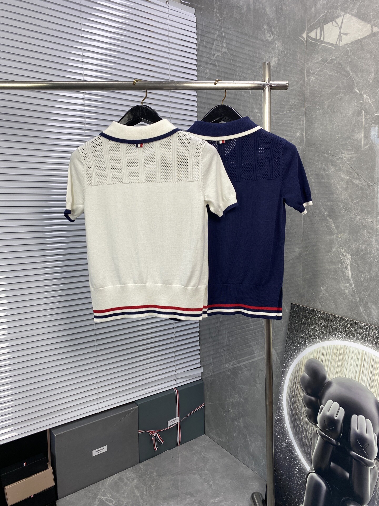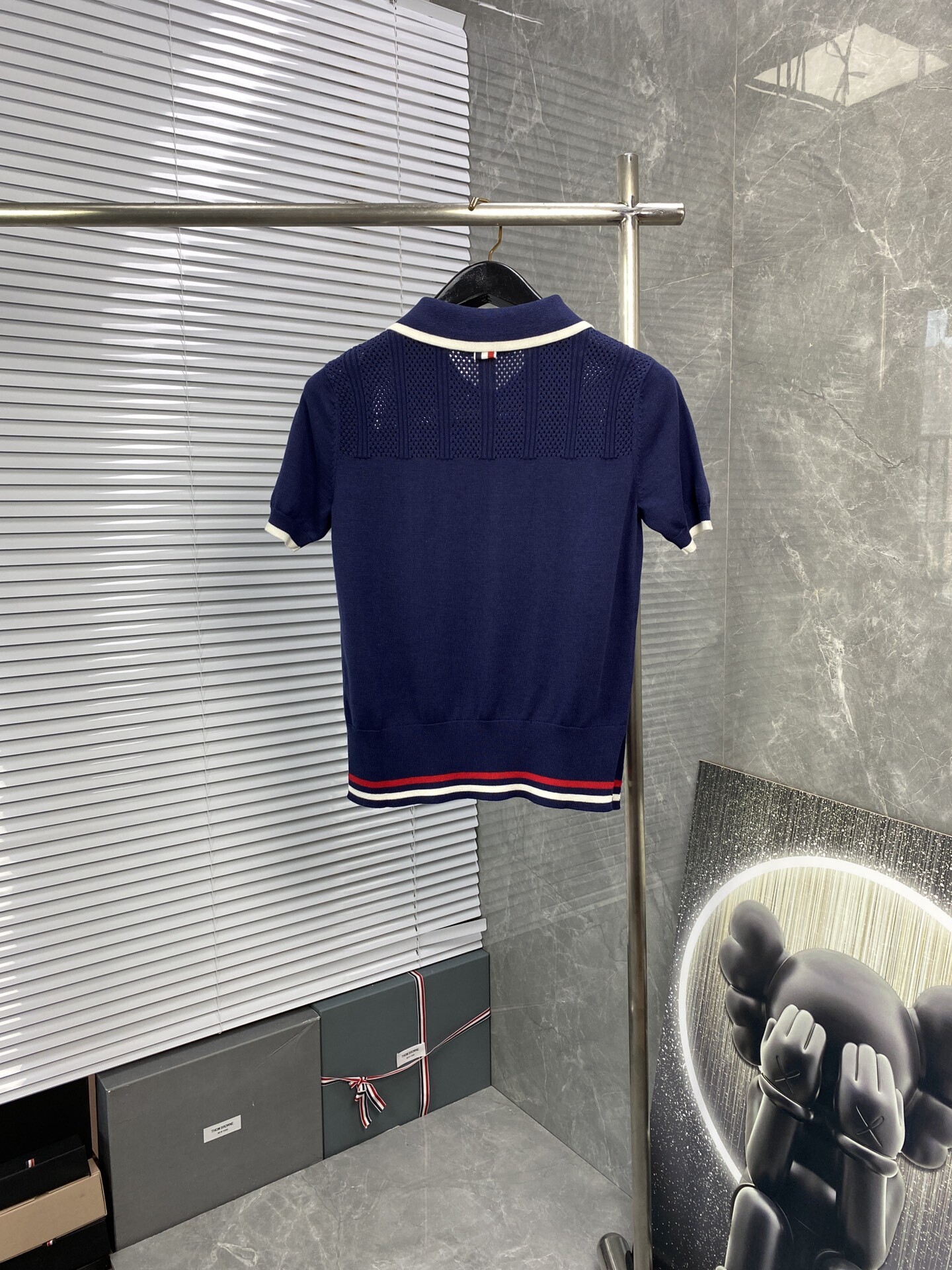 톰브라운 스트라이프 니트 폴로 반팔 티셔츠