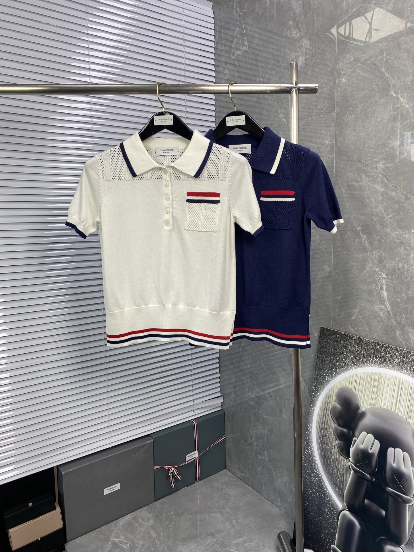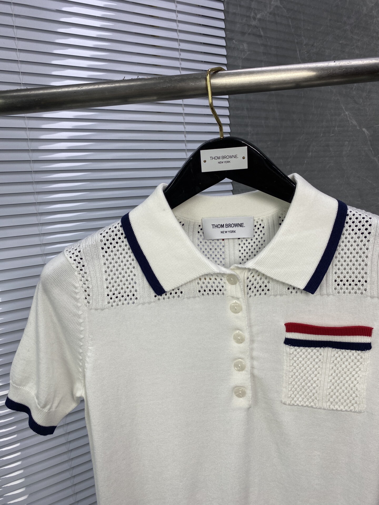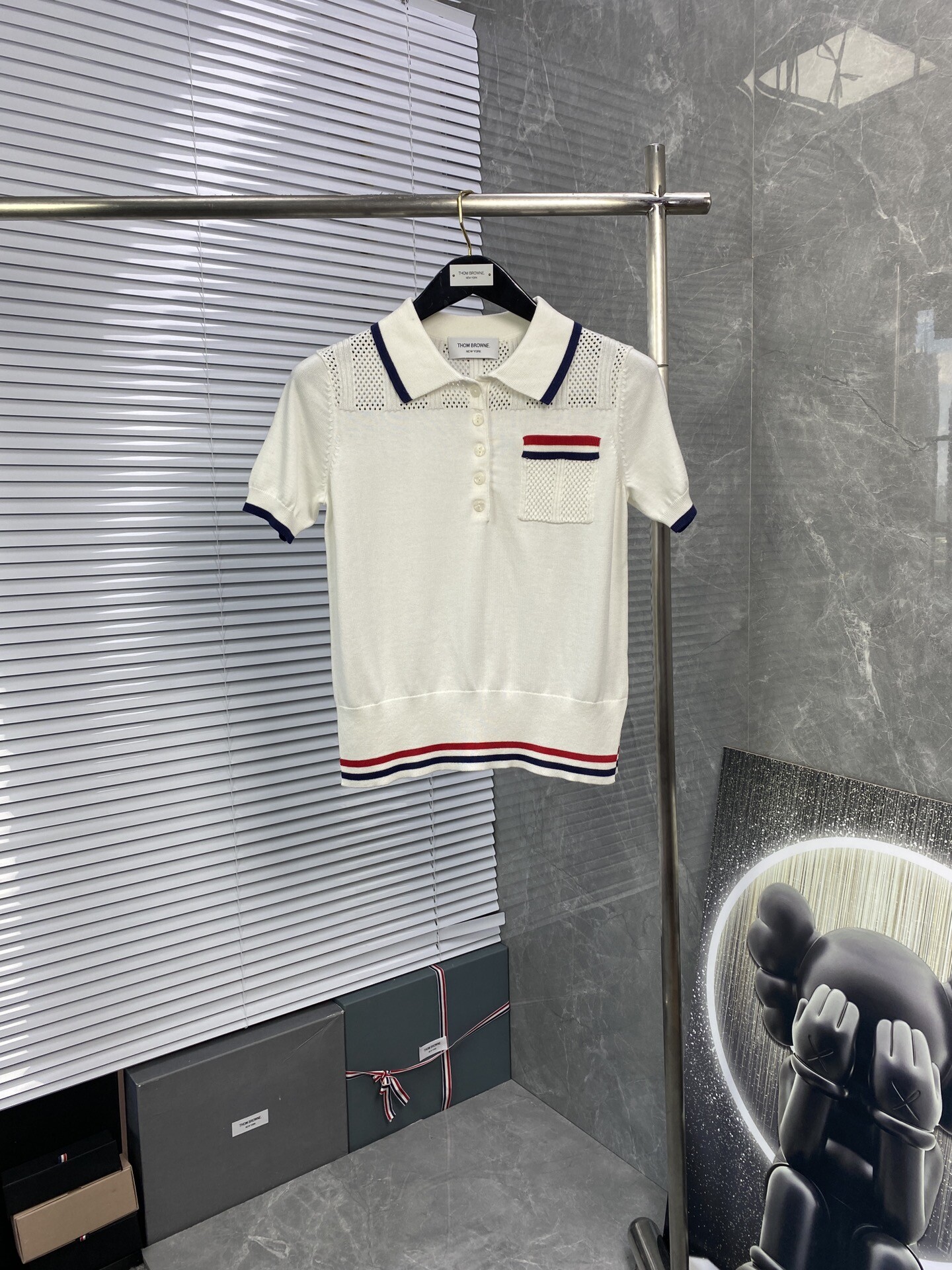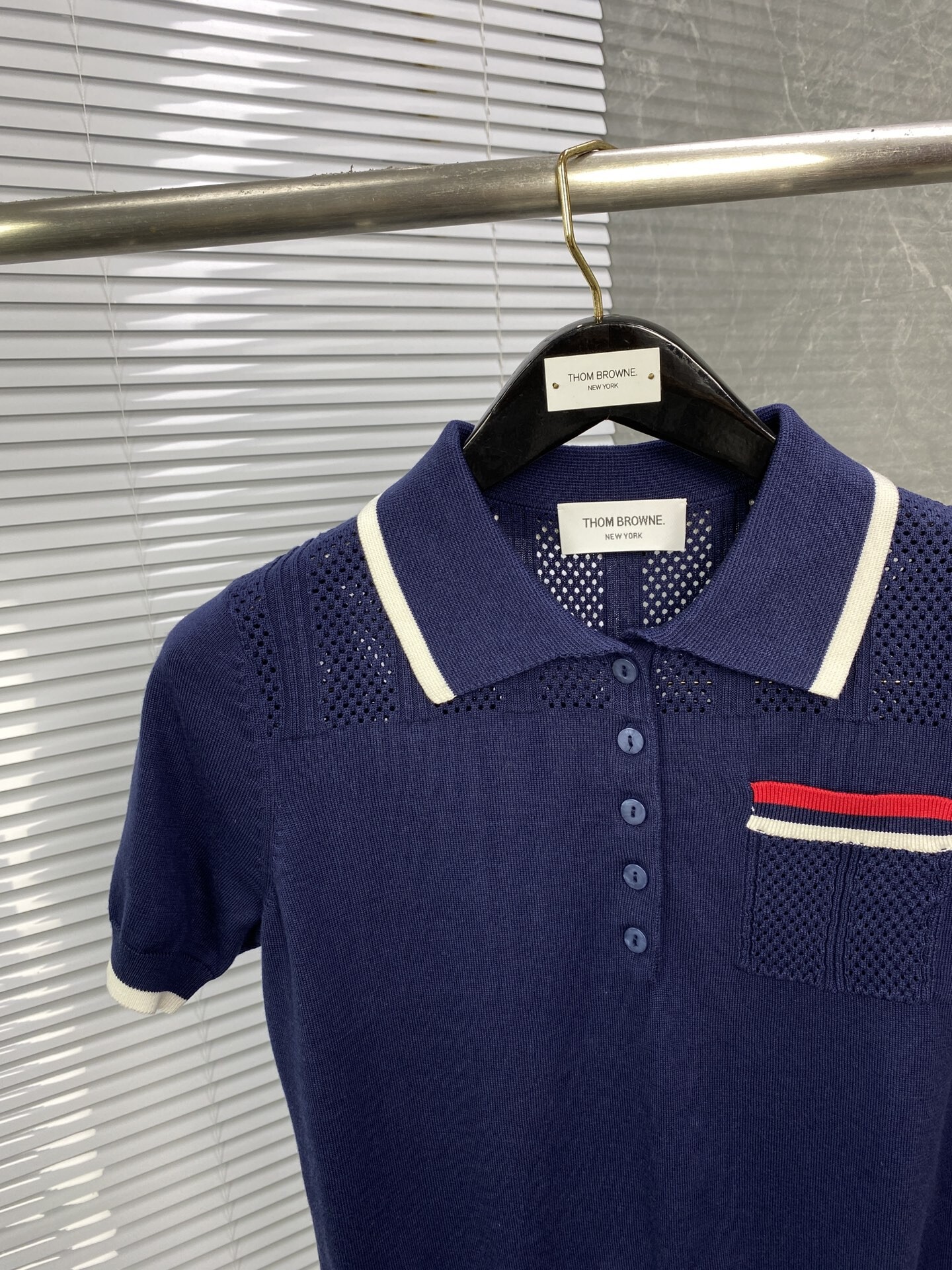 톰브라운 스트라이프 니트 폴로 반팔 티셔츠