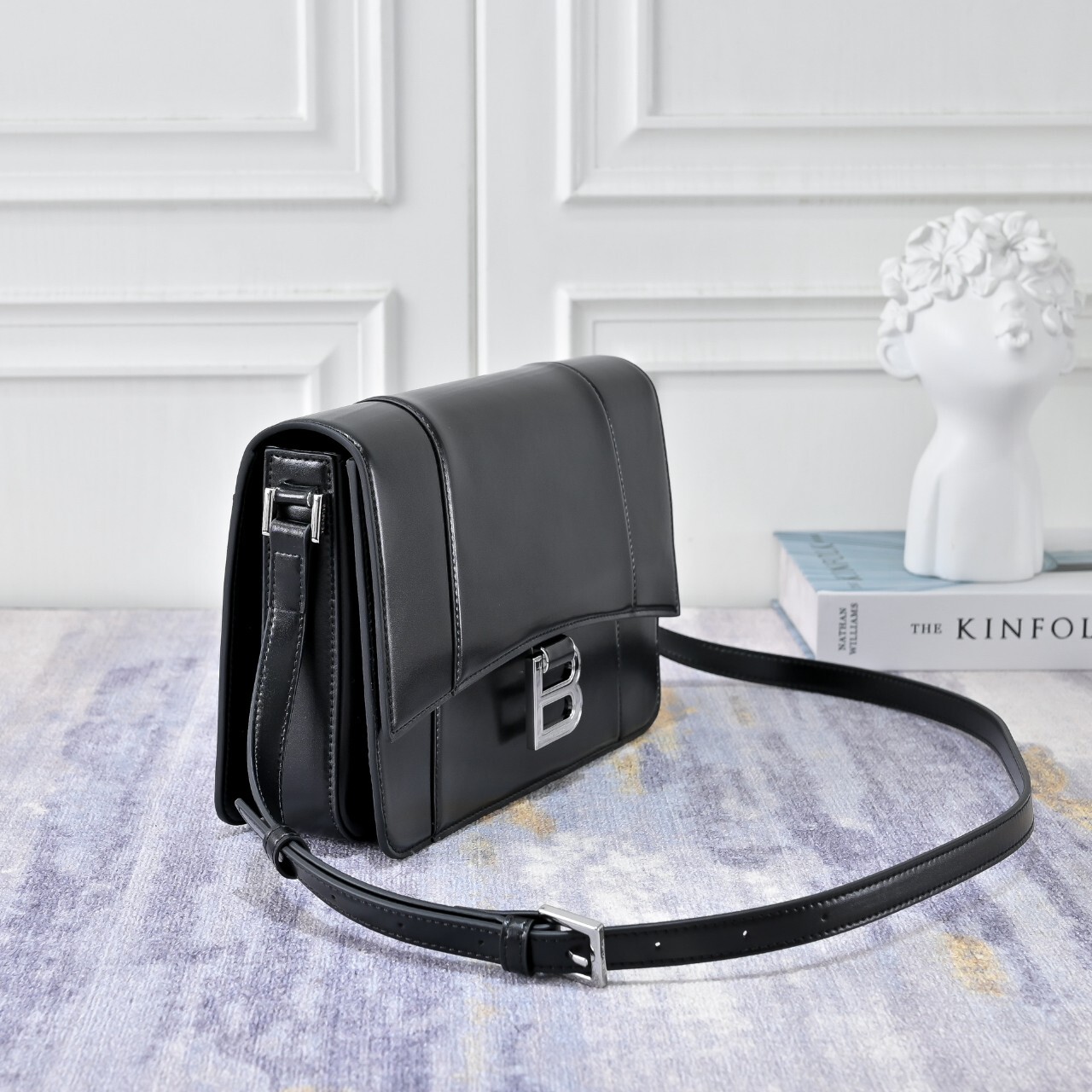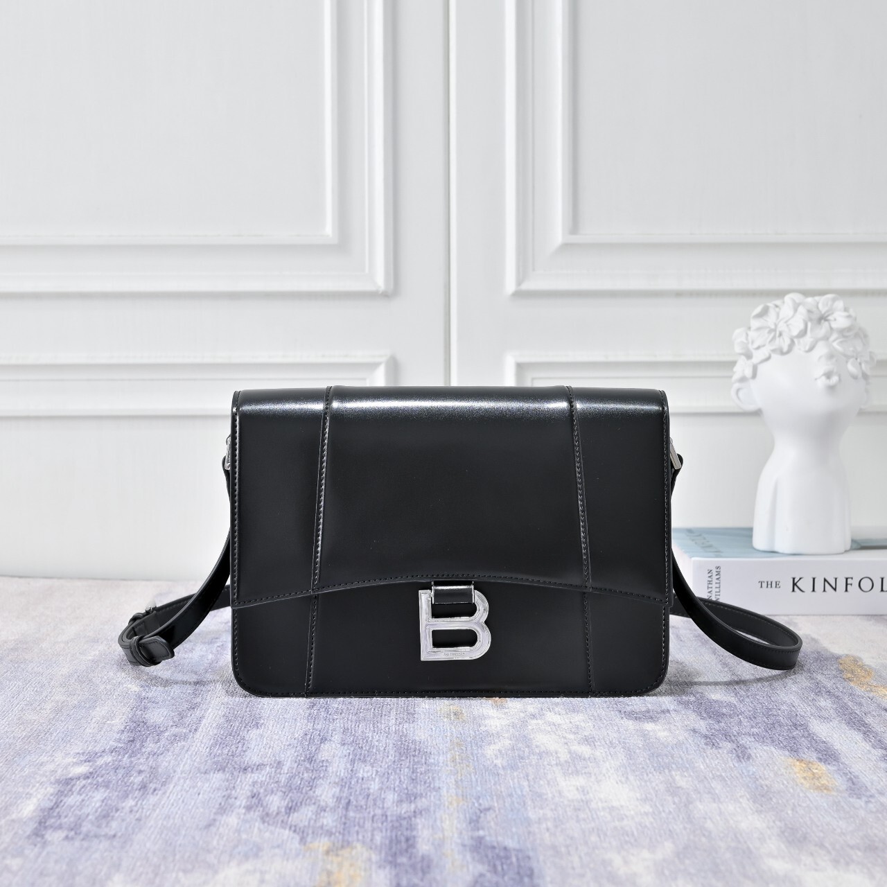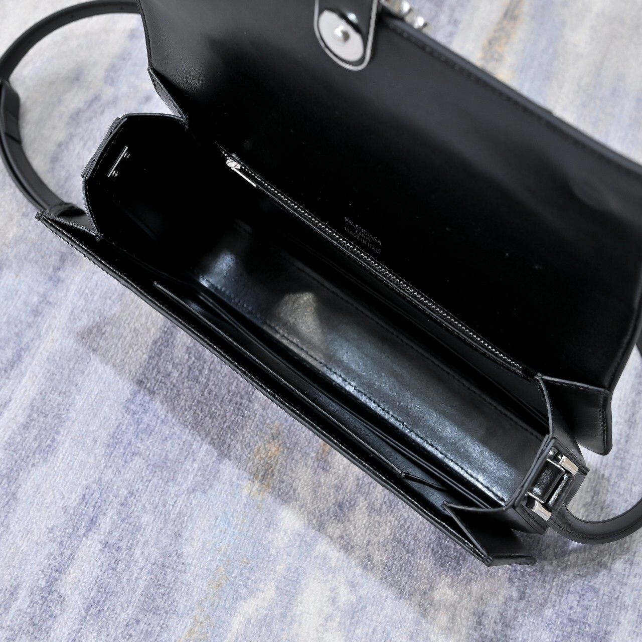 발렌시아가 아워글래스 플랩백 미디엄 블랙 은장 (8289612ABQ91000)◇ 칼 라 : 블랙 / 은장◇ 소 재 : 샤이니 카프스킨◇ 사이즈 : 25.9 × 17.7 × 6.8 cm◇ 스트랩 : 길이조절 가능, 드롭시 50cm