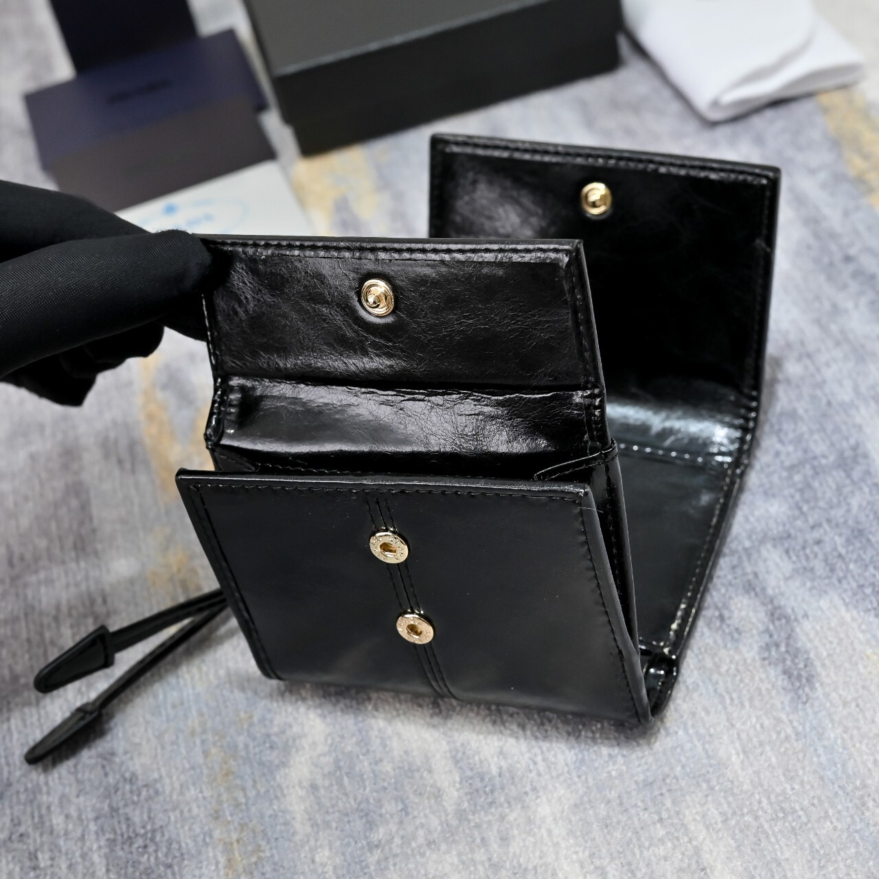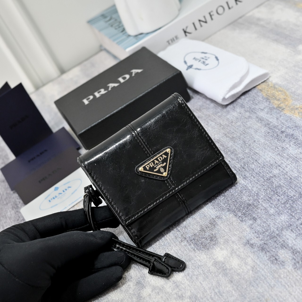 프라다 스몰 가죽 지갑(1MH043_2CYR_F0002)에나멜 메탈 트라이앵글 로고로 장식된 스몰 가죽 지갑으로 모던한 세련미를 자아냅니다. 세련된 디테일과 섬세한 장인정신이 돋보이는 유행을 타지 않는 액세서리입니다.풀박◇ 칼 라 : 블랙◇ 사이즈 : 10x 8.5 x 1.5cm(길이 x 높이 x 너비)