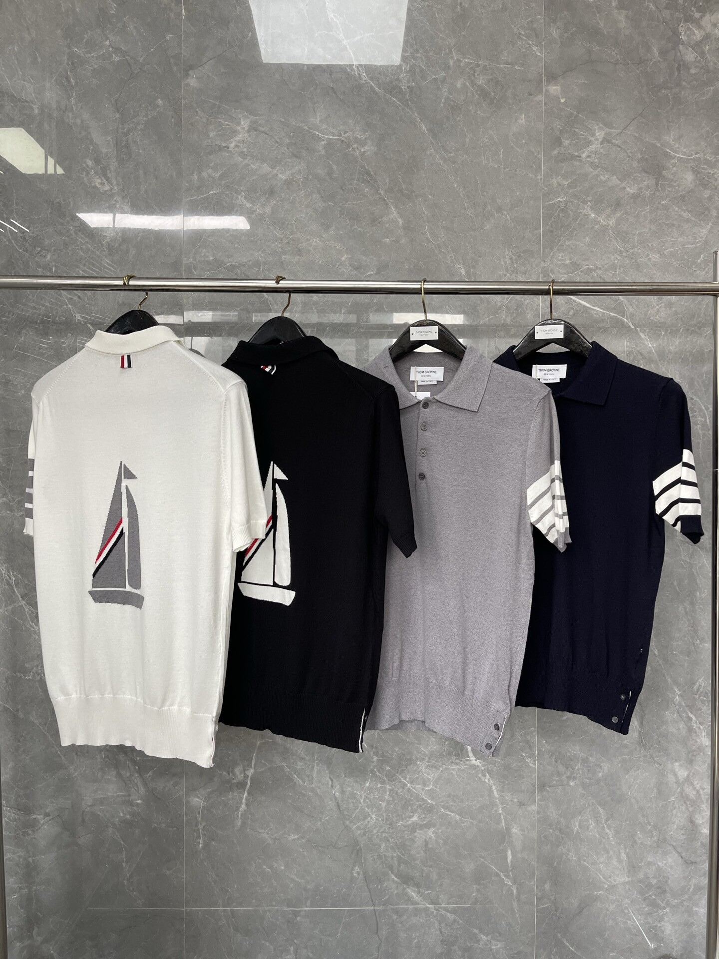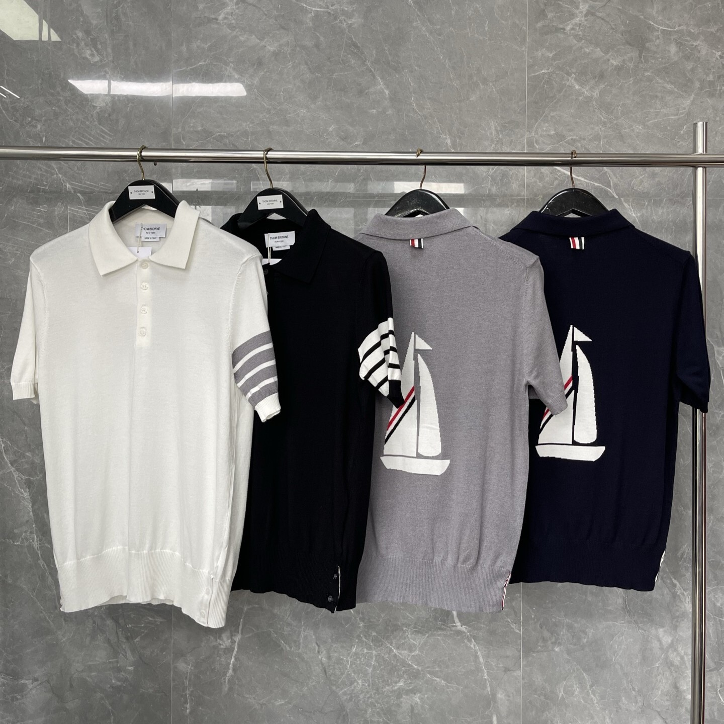 톰브라운 니트 폴로 반팔 티셔츠