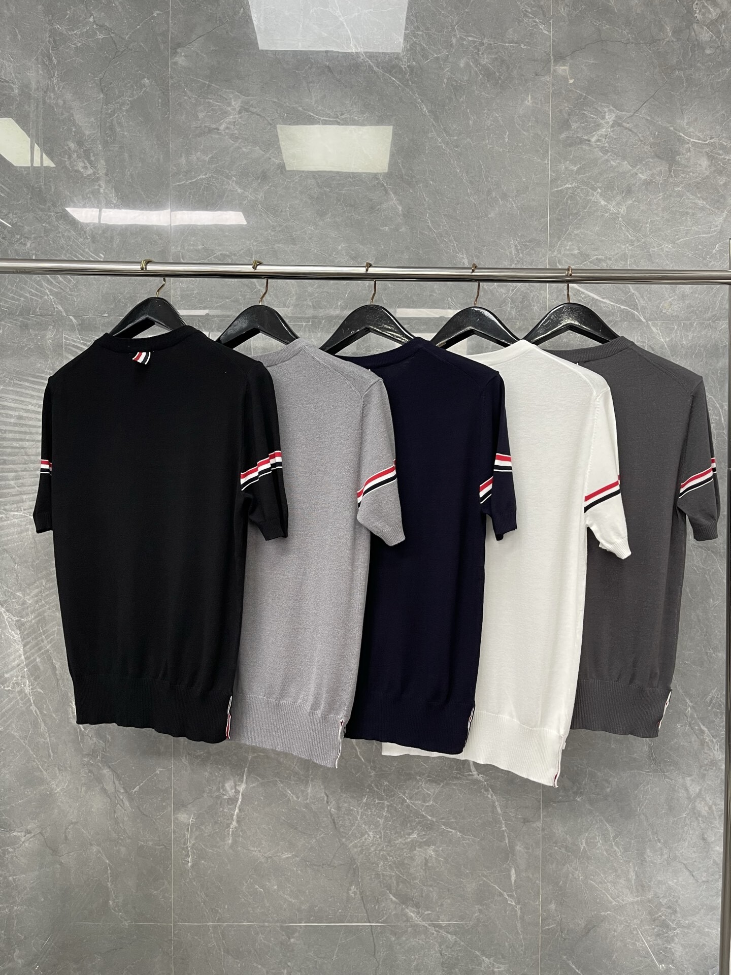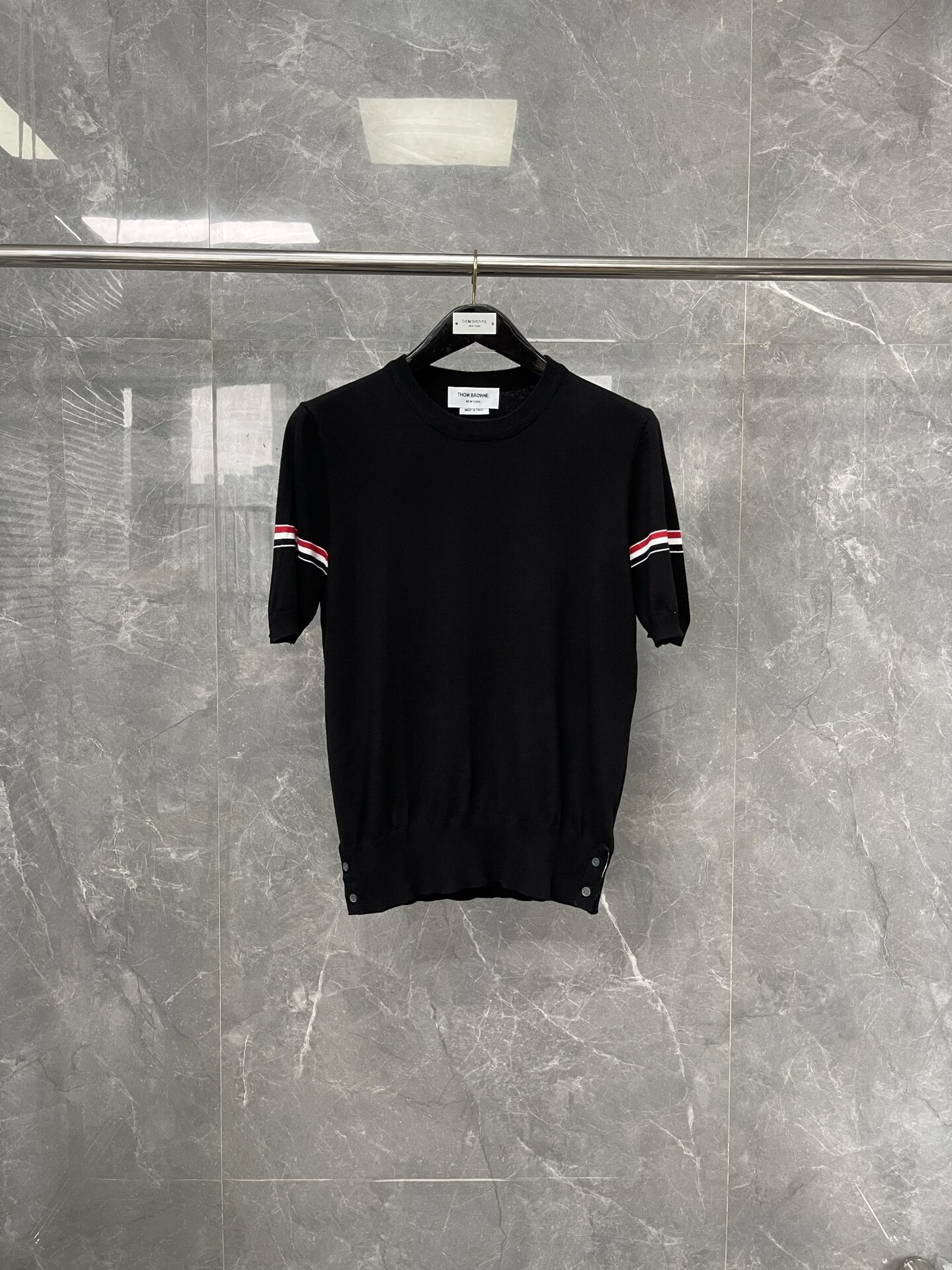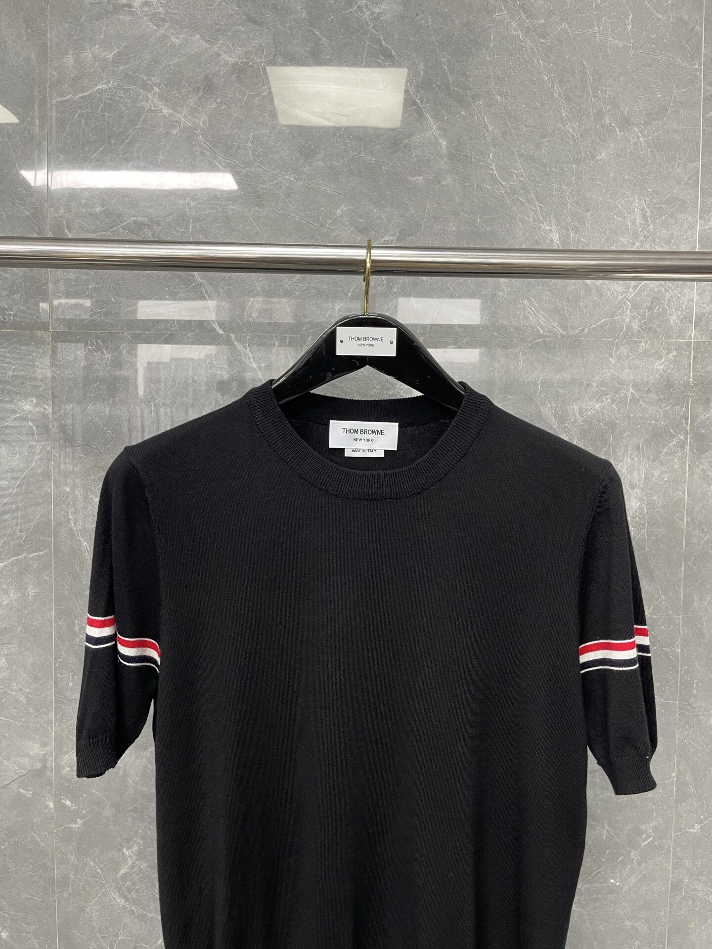 톰브라운 니트 라운드 반팔 티셔츠