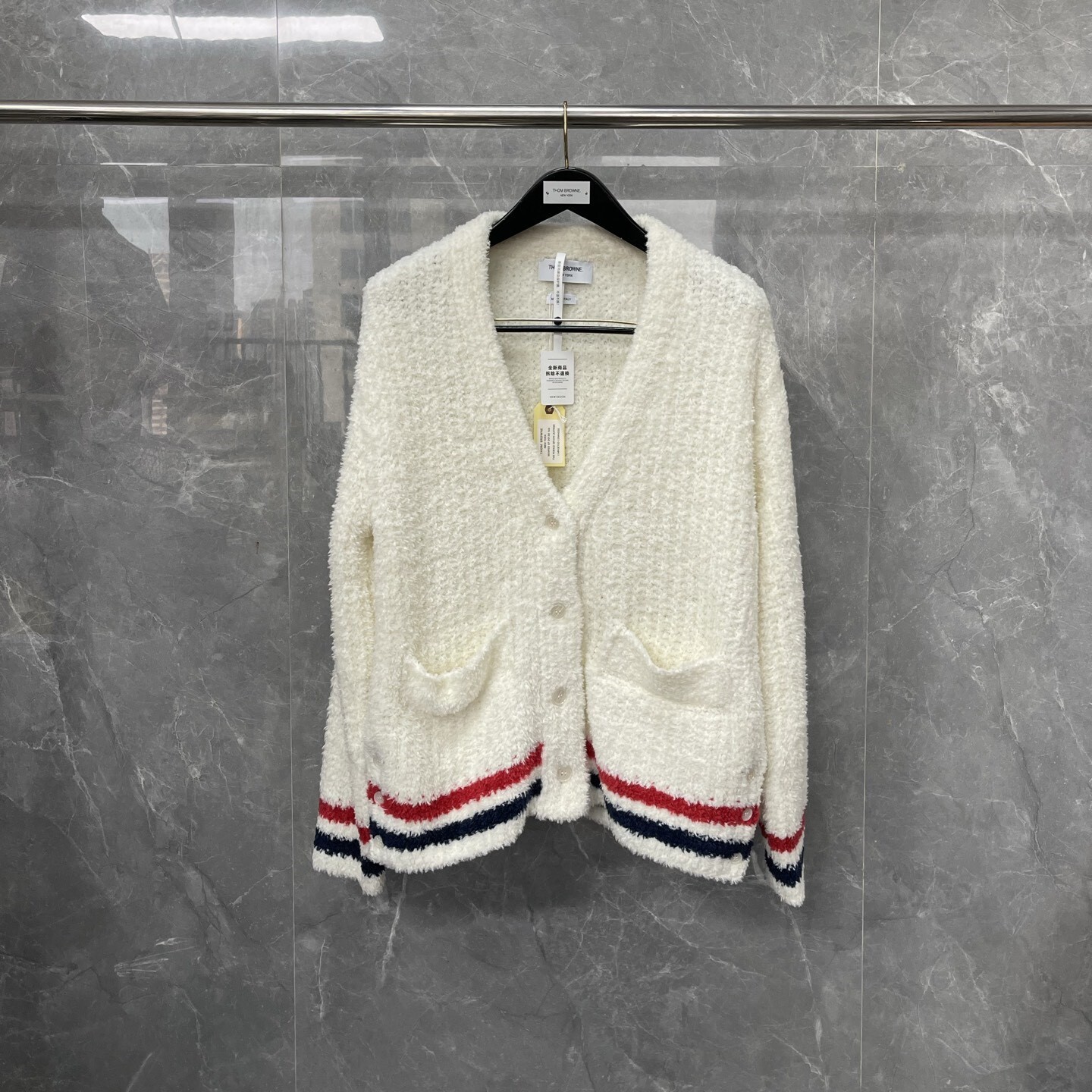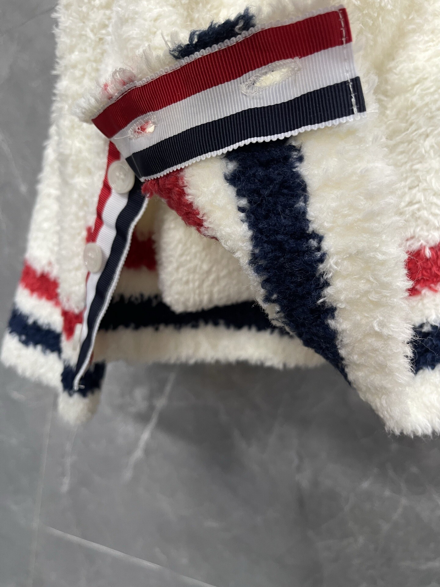 톰브라운 부클 울 스트라이프 카디건