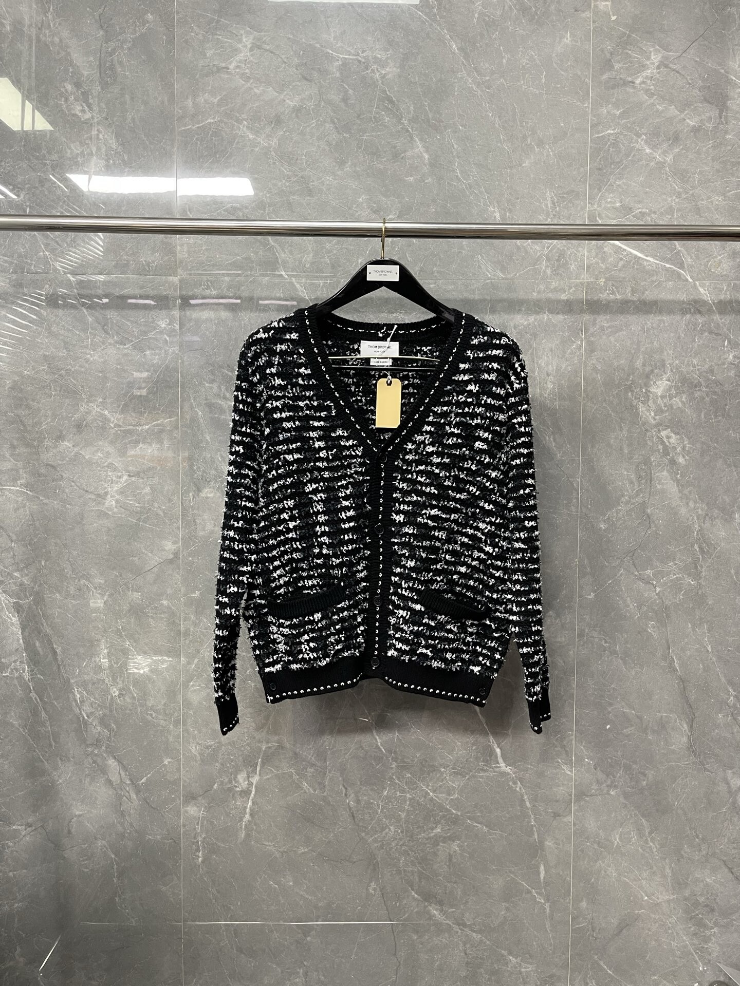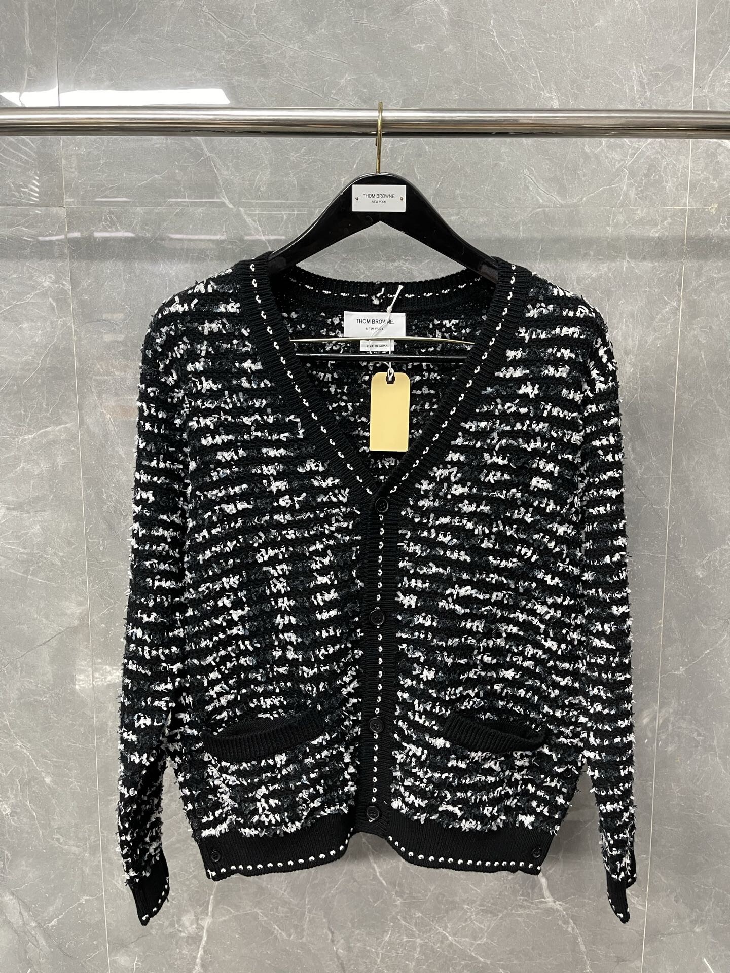 톰브라운 트위드 자카드 카디건
