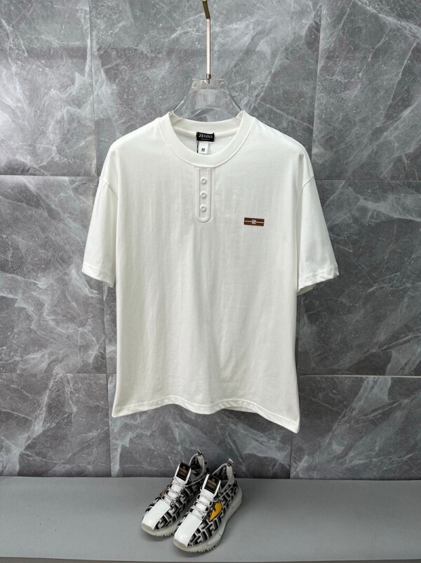 버튼 라운드 남녀 반팔 티