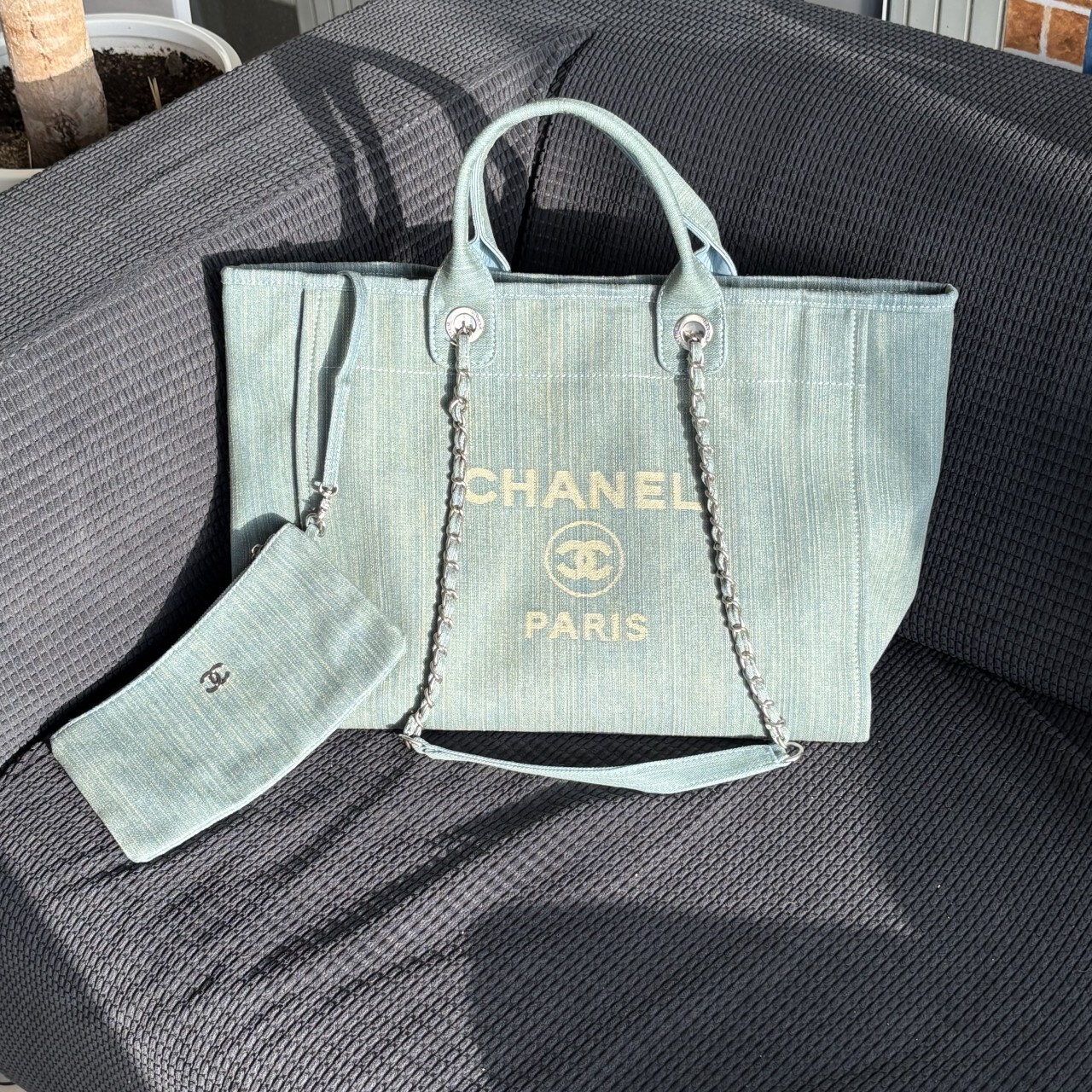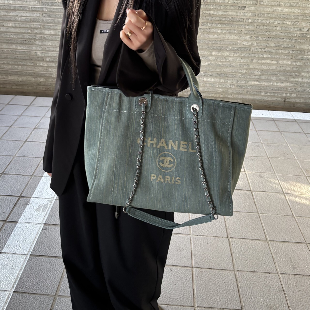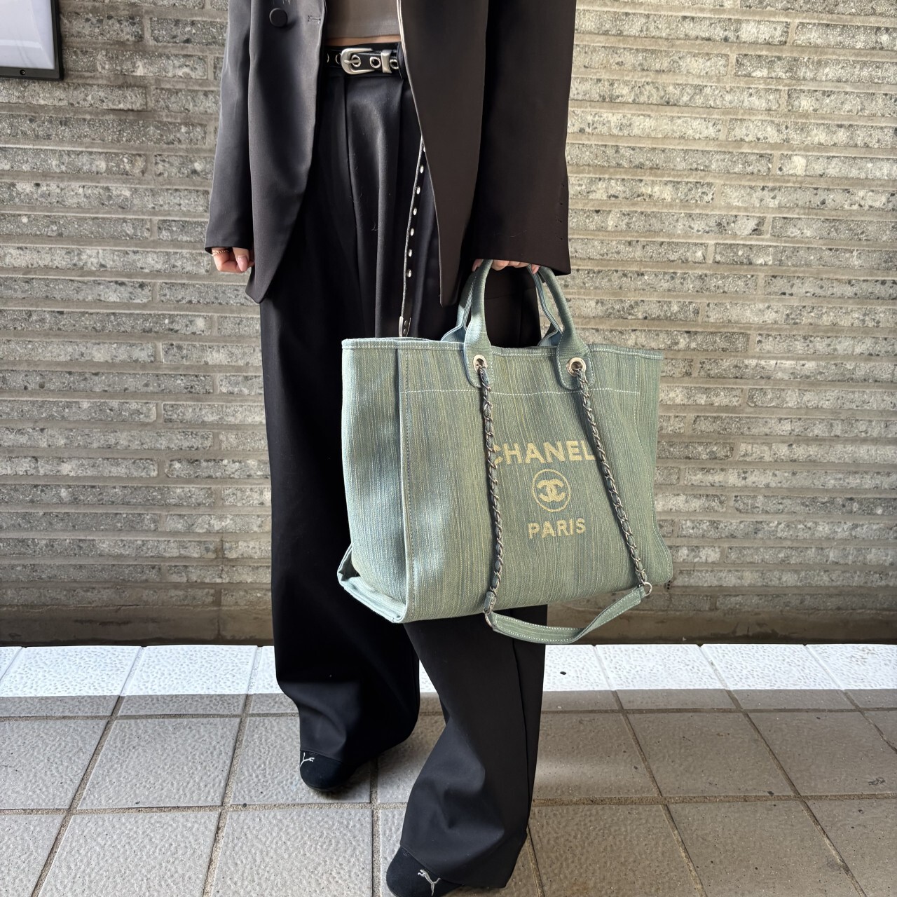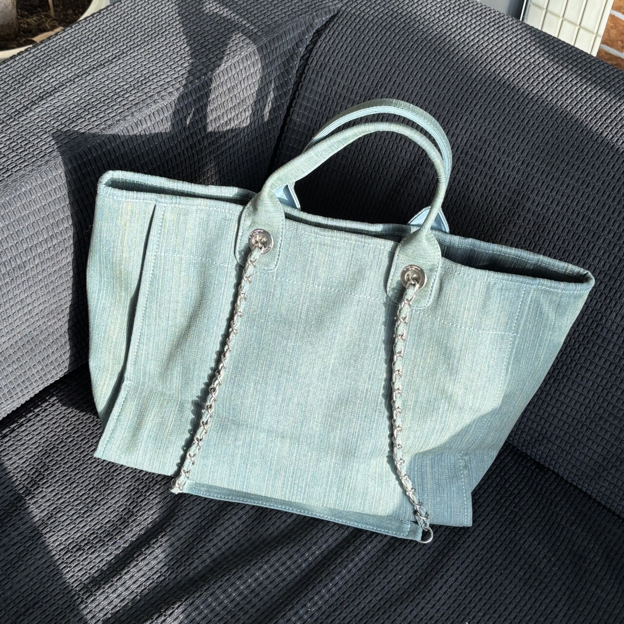 샤넬 데님 라지 도빌백