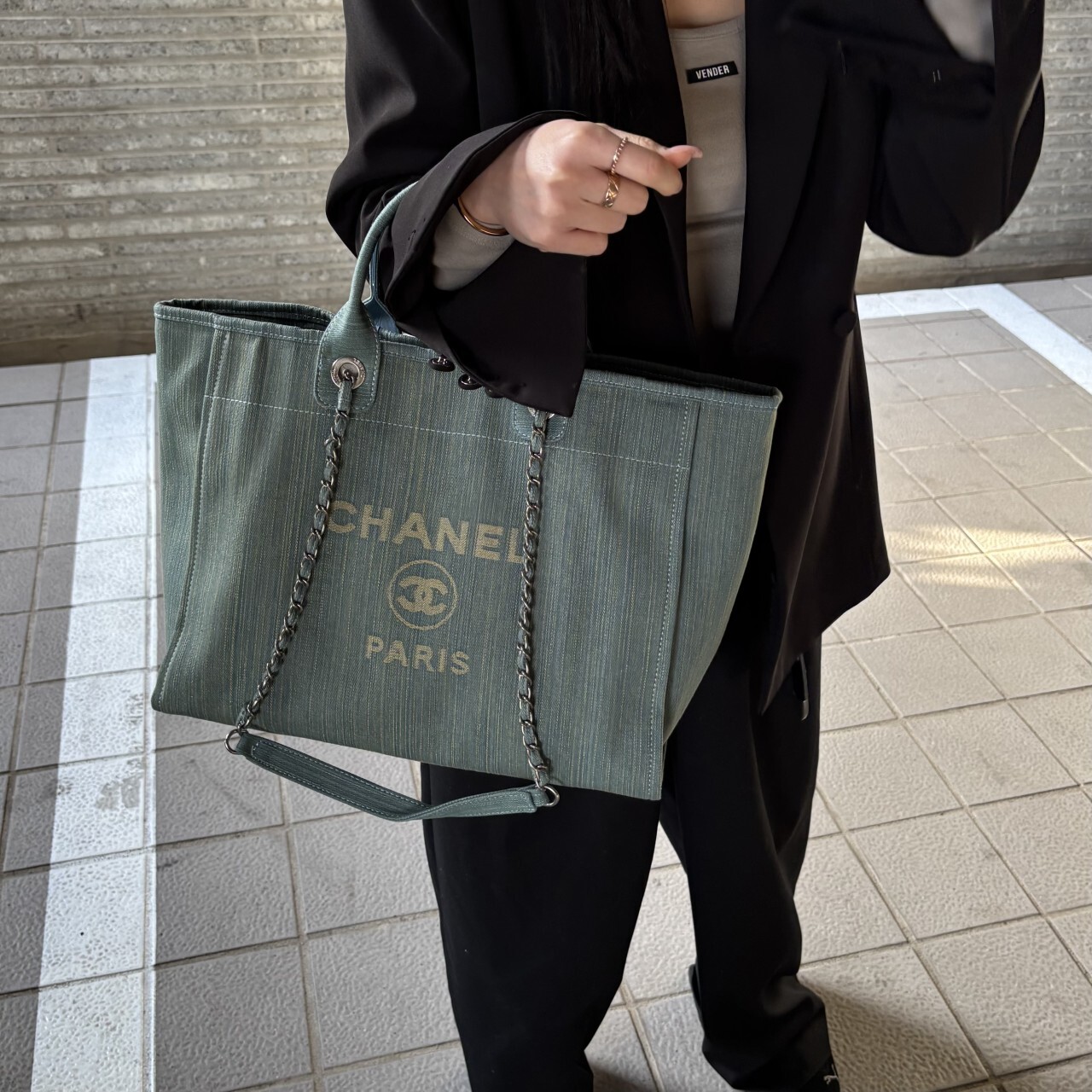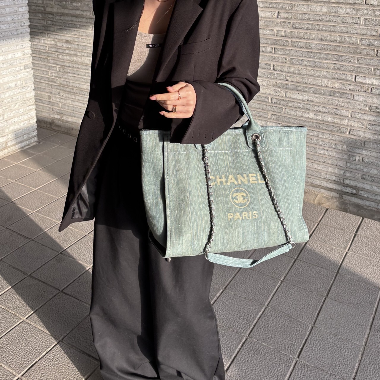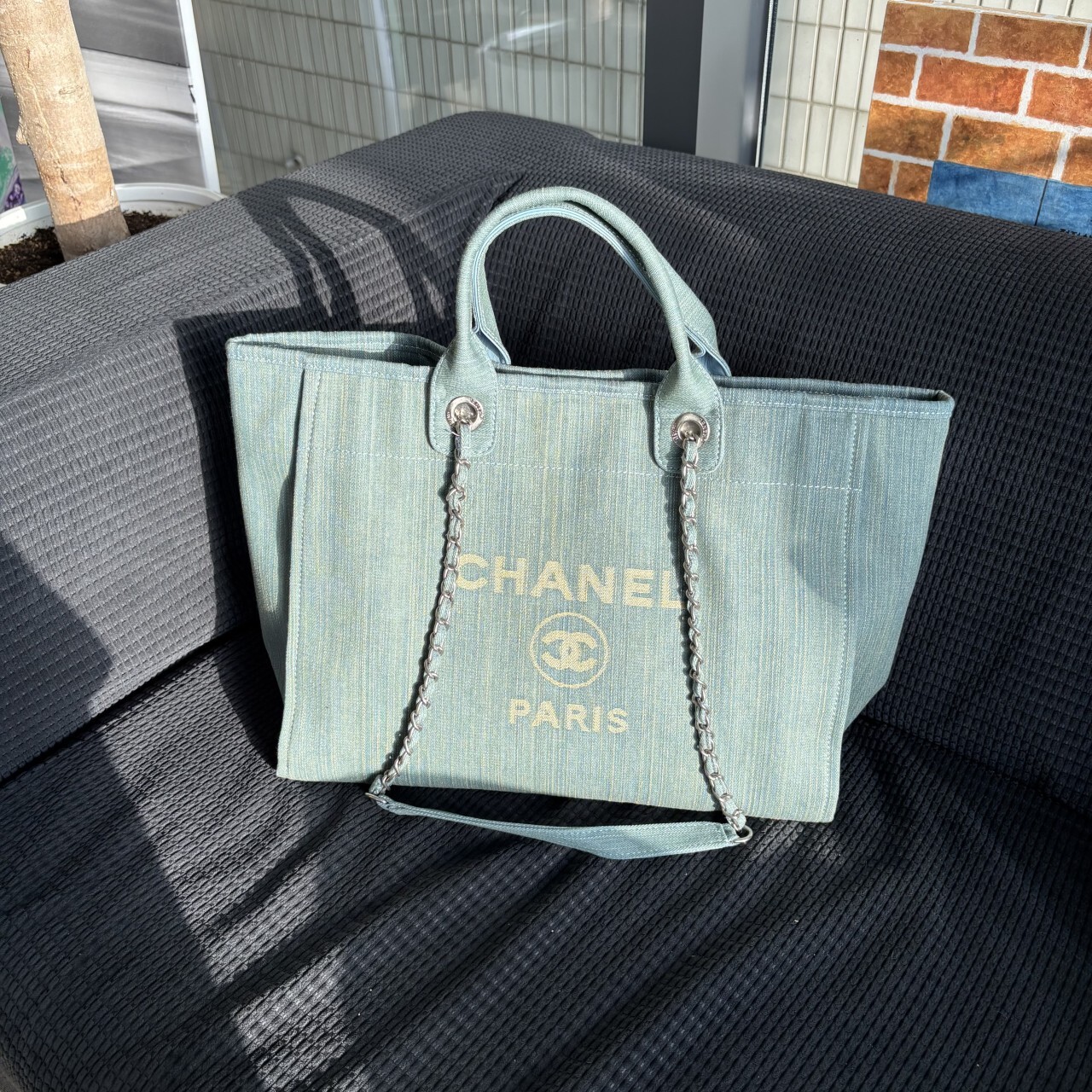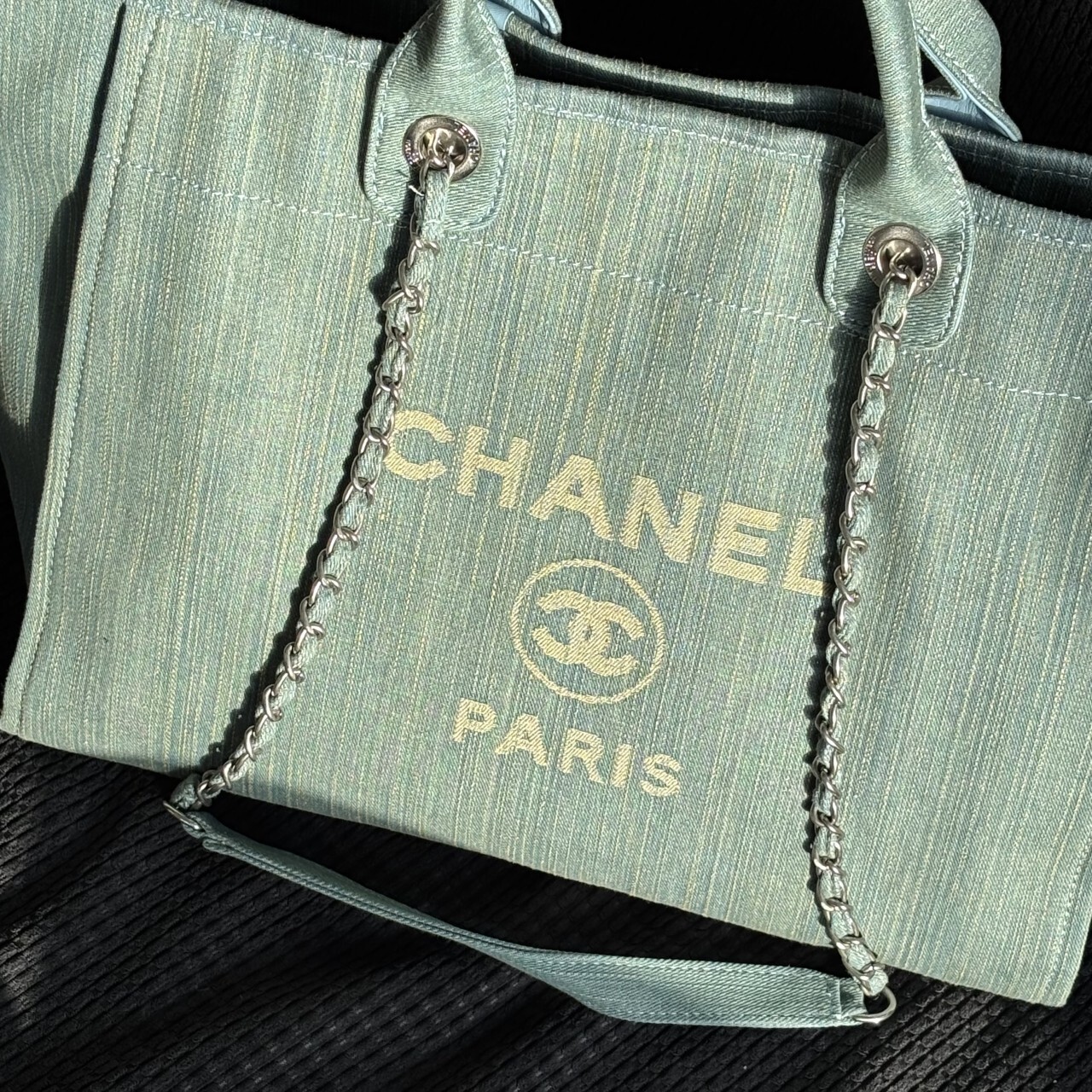 샤넬 데님 라지 도빌백