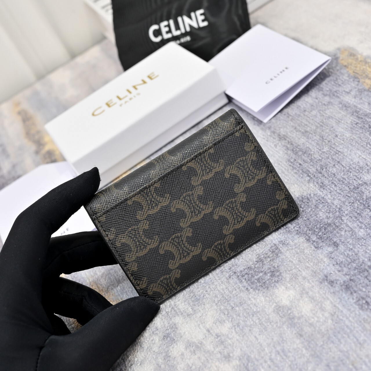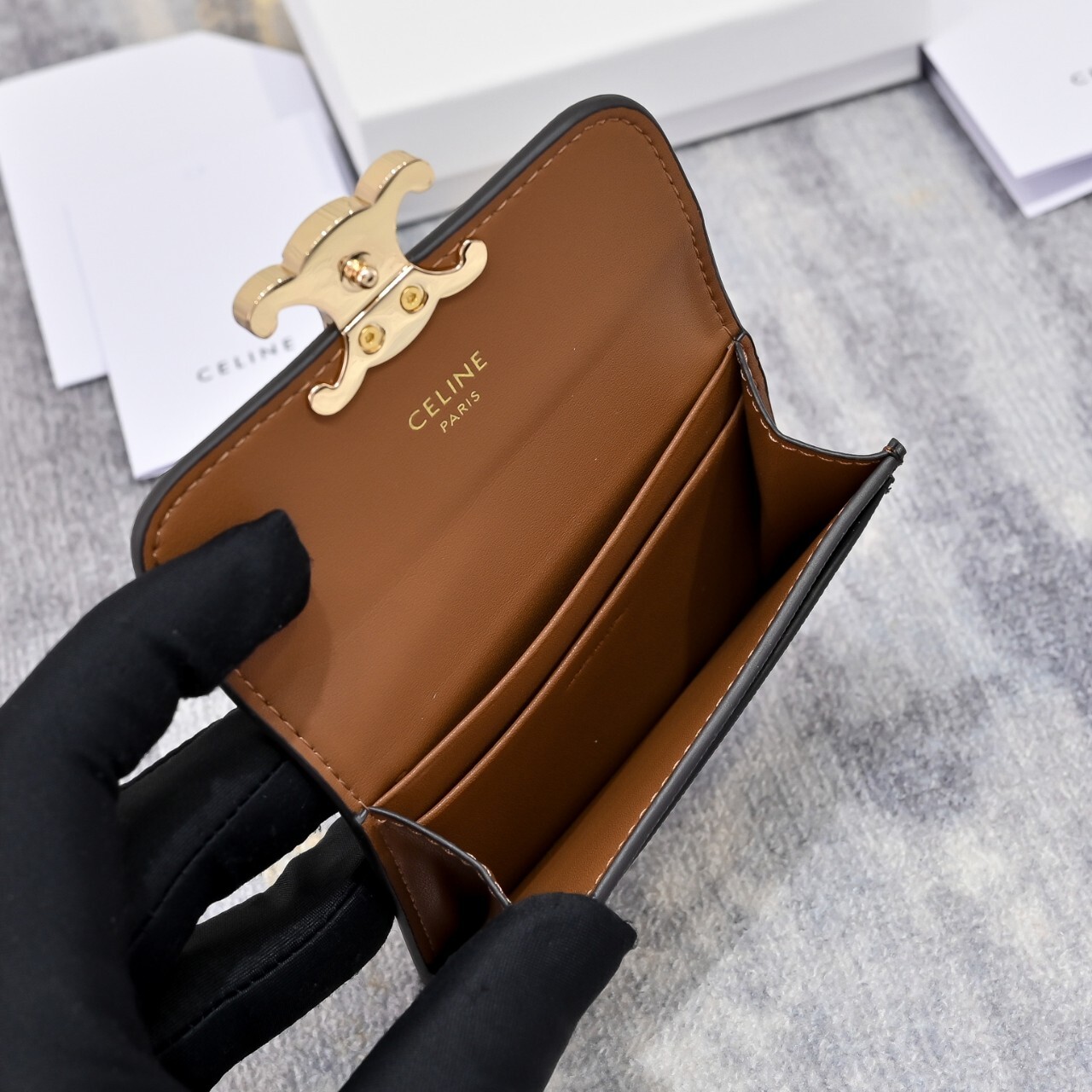 셀린느 플랩 카드지갑 탄(10I582CPJ.04LU)풀박칼 라 : 탄사이즈 : 10.5 X 7 X 1cm(가로 × 높이 × 너비) 사 양 : 메인 수납공간 1개, 내부 신용 카드 슬롯 2개, 내부 플랫 포켓 1개, 외부 플랫 포켓 1개