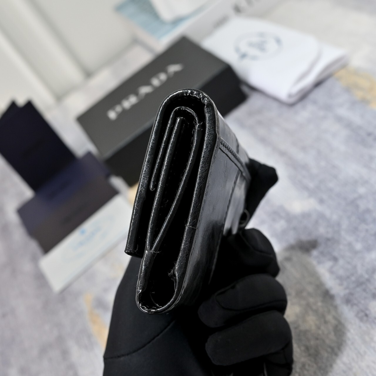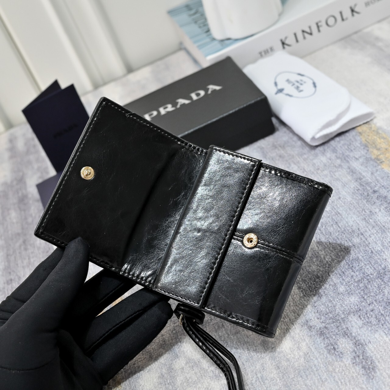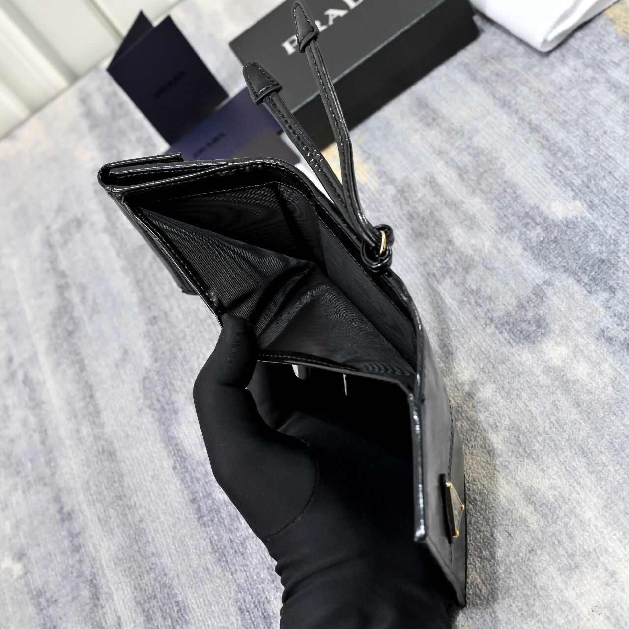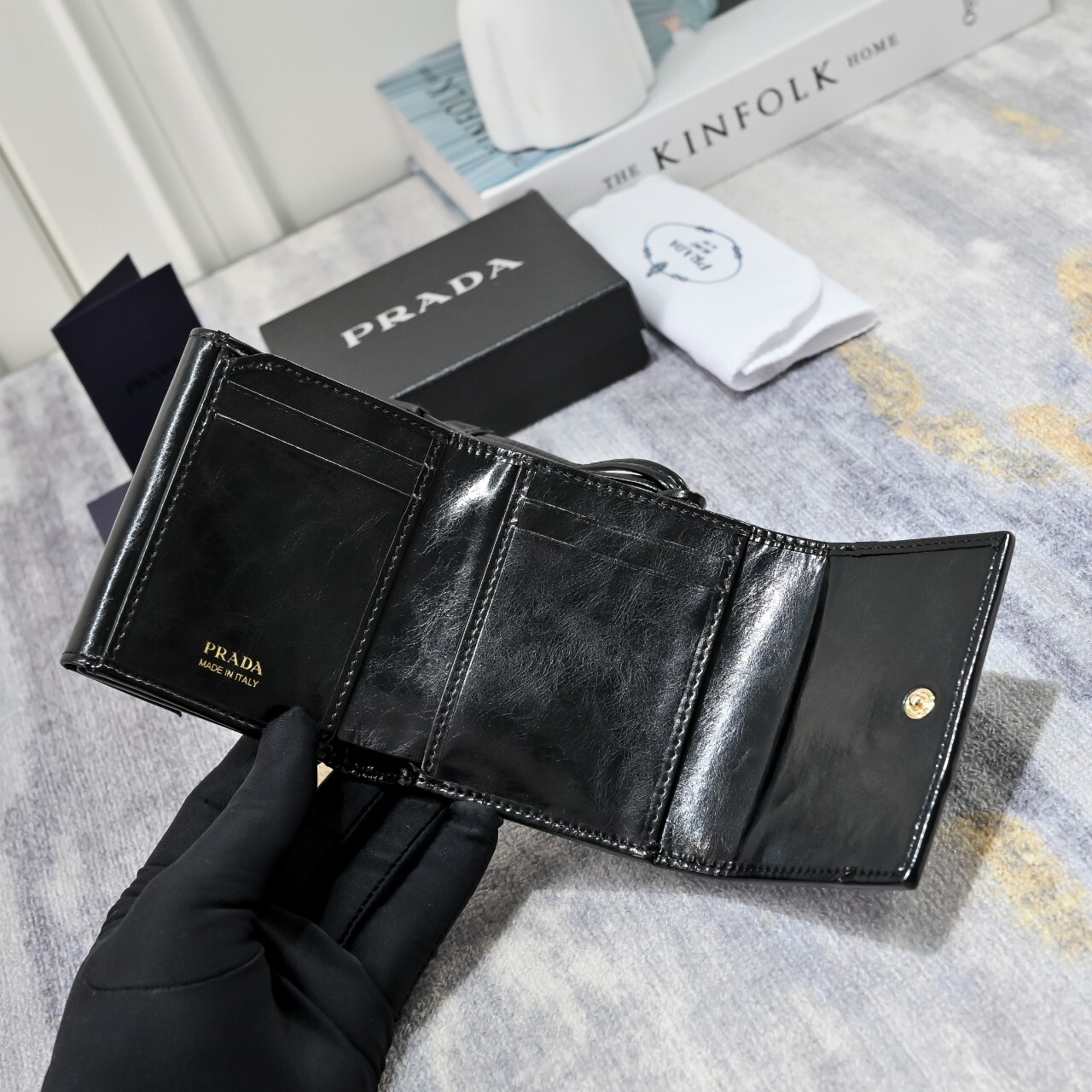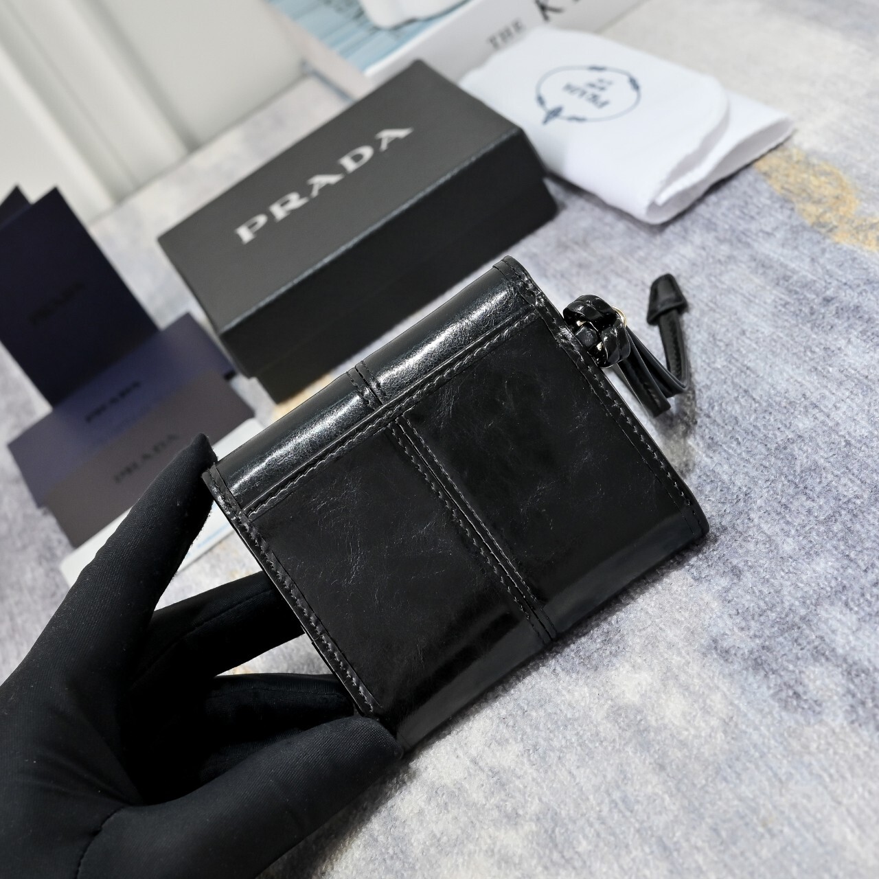 프라다 스몰 가죽 지갑(1MH043_2CYR_F0002)에나멜 메탈 트라이앵글 로고로 장식된 스몰 가죽 지갑으로 모던한 세련미를 자아냅니다. 세련된 디테일과 섬세한 장인정신이 돋보이는 유행을 타지 않는 액세서리입니다.풀박◇ 칼 라 : 블랙◇ 사이즈 : 10x 8.5 x 1.5cm(길이 x 높이 x 너비)