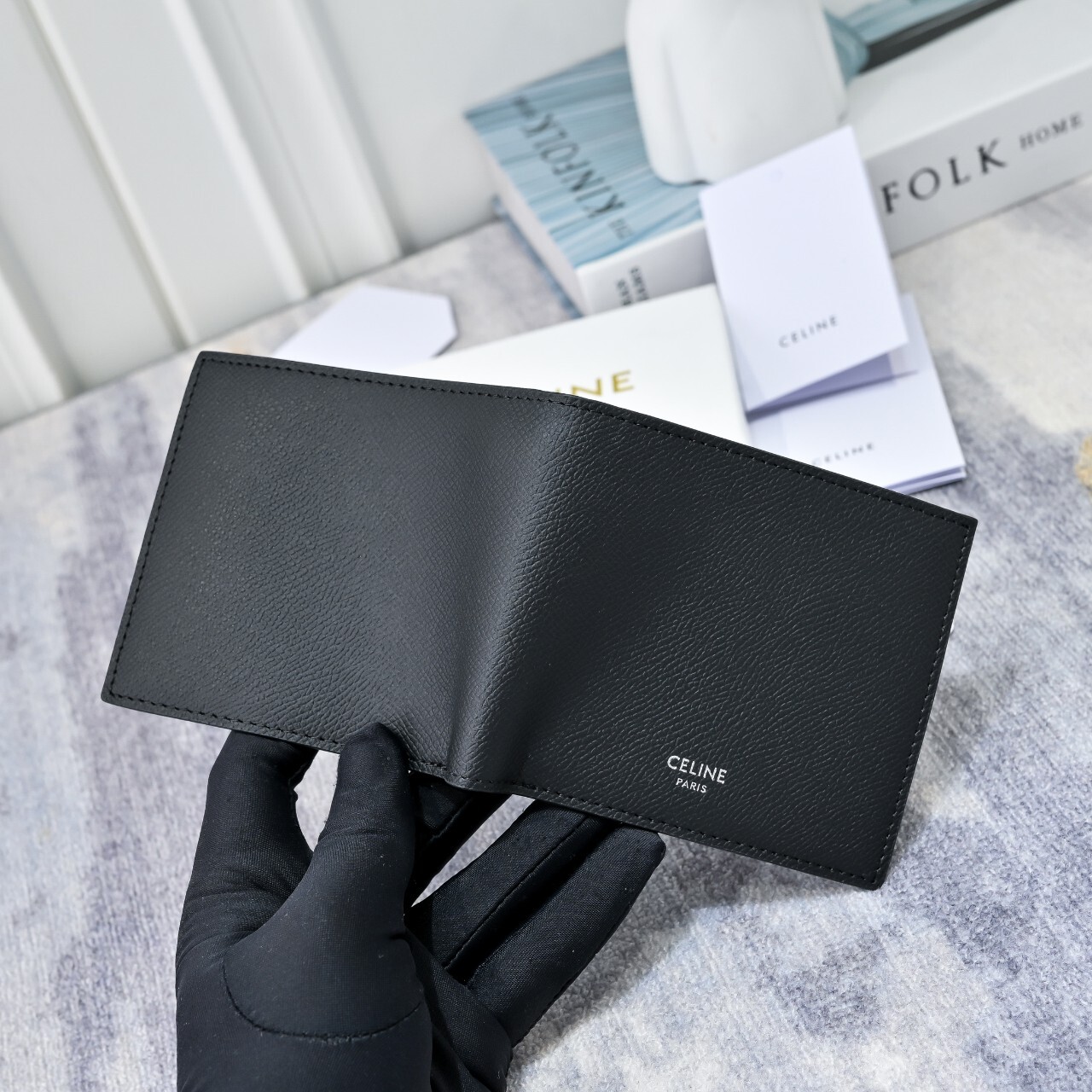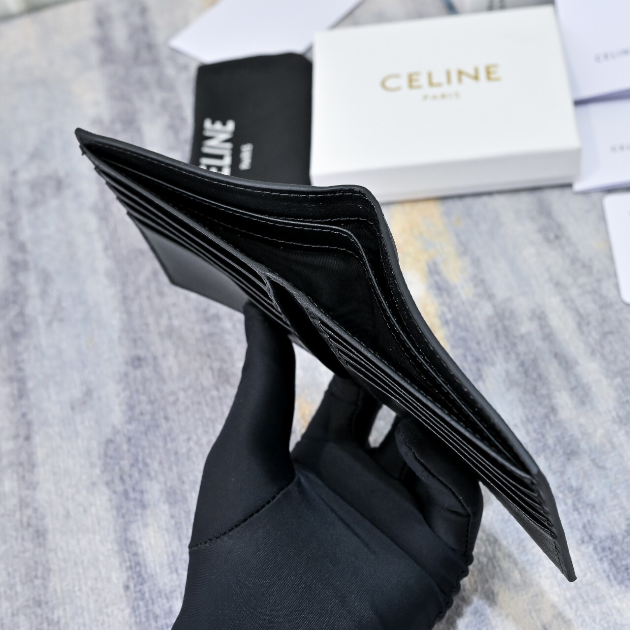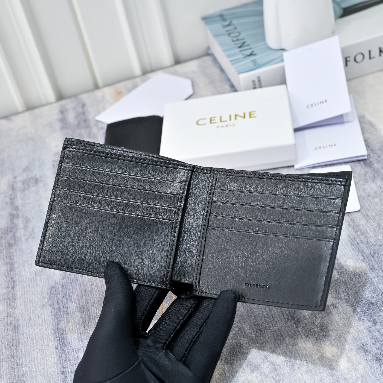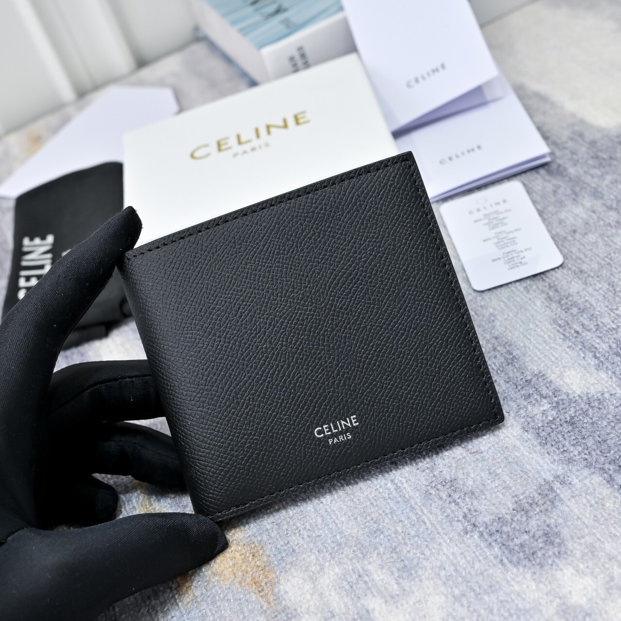 셀린느 반지갑 블랙(10B653BEN.38SI)풀박◇ 칼 라 : 블랙◇ 소 재 : 카프스킨 ◇ 사이즈 : 11 X 10 X 2cm(가로 × 높이 × 너비)◇ 사 양 : 내부 카드 슬롯 8개, 내부 지폐 포켓 2개, 내부 플랫 포켓 2개