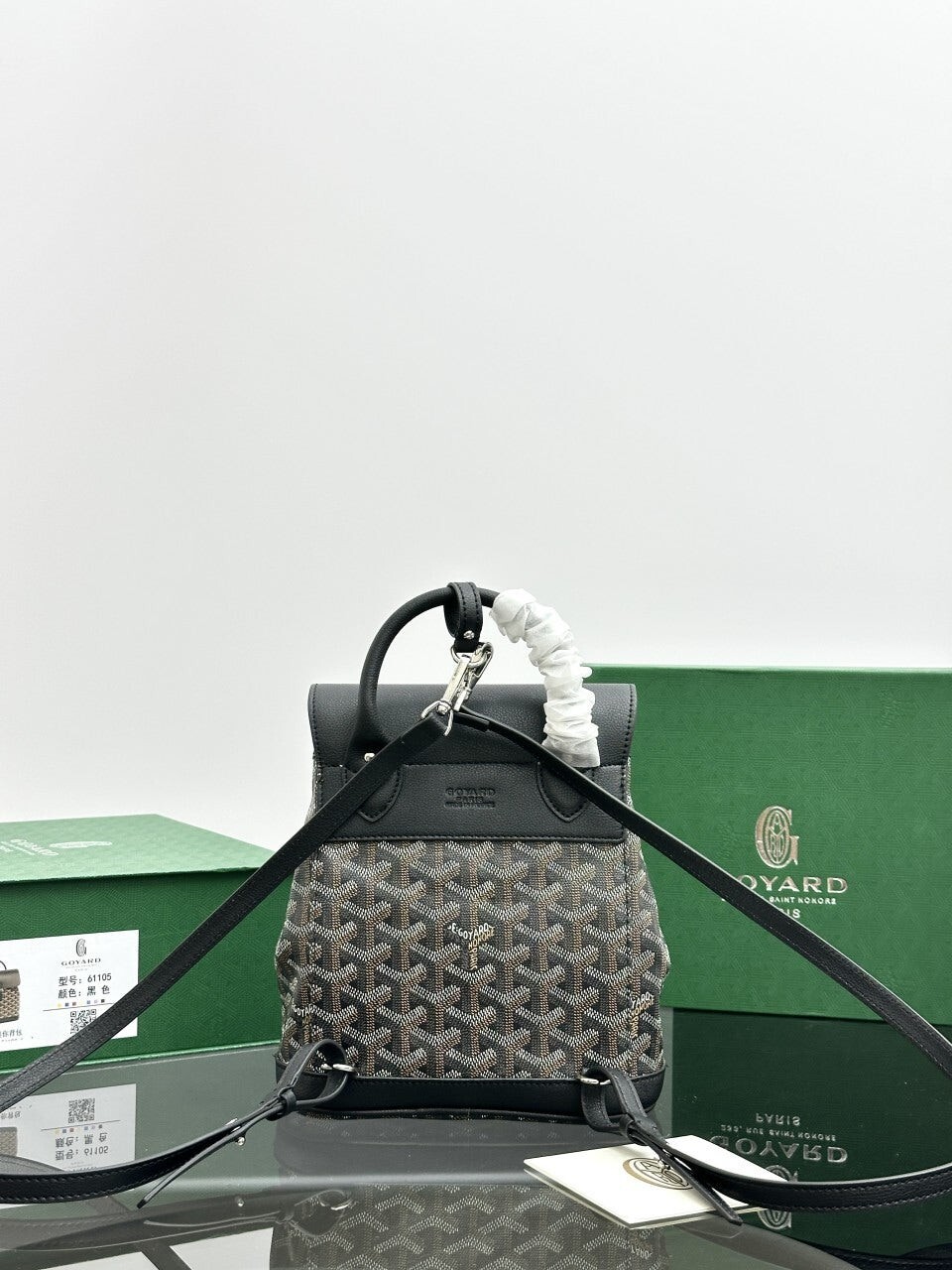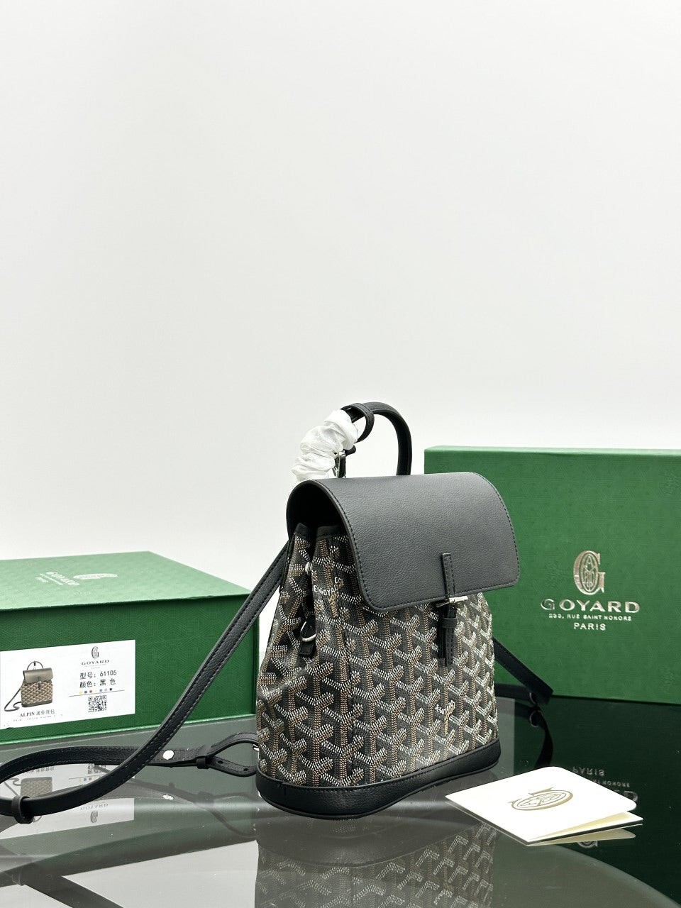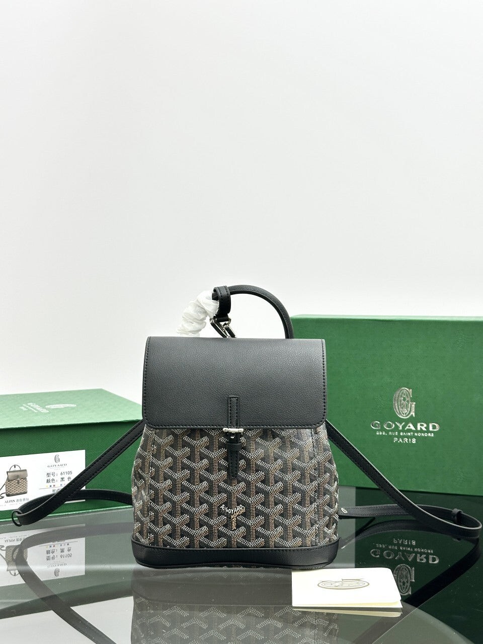 고야드 알팡 백팩 미니 (ALPIN2MINTY)풀박• 사이즈: 19 x 23 x 9.5 cm• 컬러: 블랙• 오후 5시 이전 당일배송 제품• 스튜디오 에서 현물로 촬영한 실사입니다.고야드 알팡 백팩 미니는 두개의 탈부착 및 길이 조절 가능한 스트랩과 실용적인 훅 세트를 갖춰, 스타일에 따라 자유롭게 연출할 수 있는 모듈형 디자인이 특징입니다.